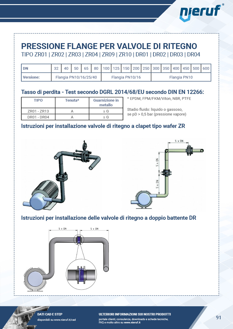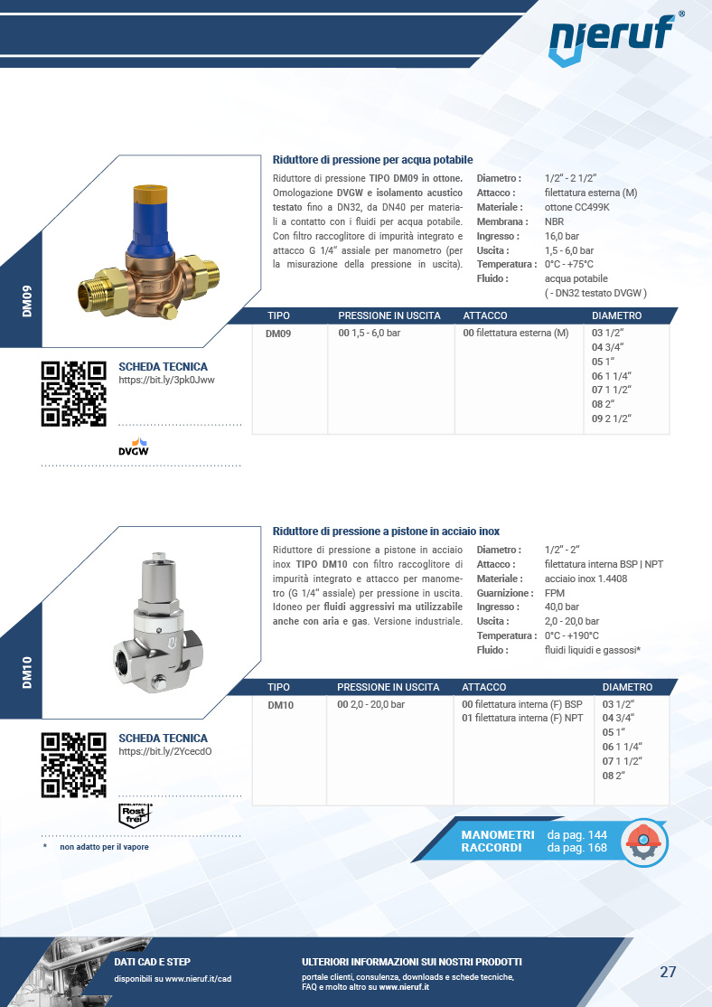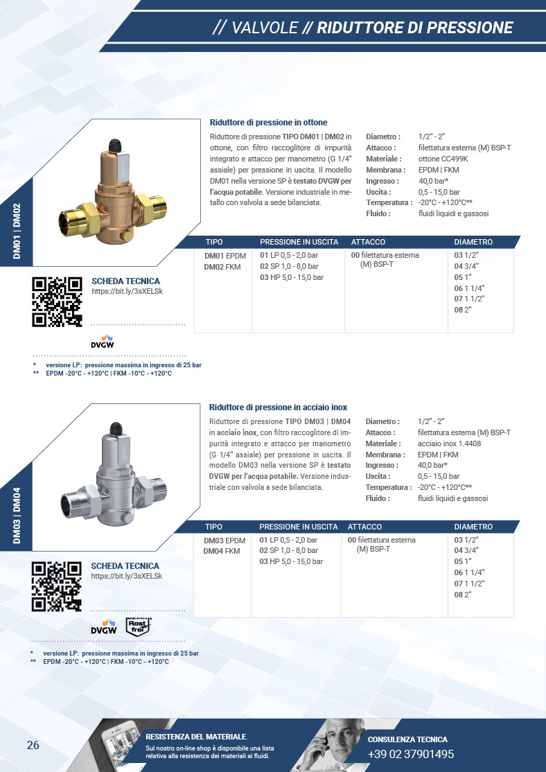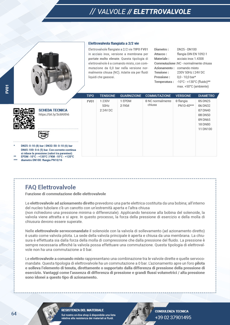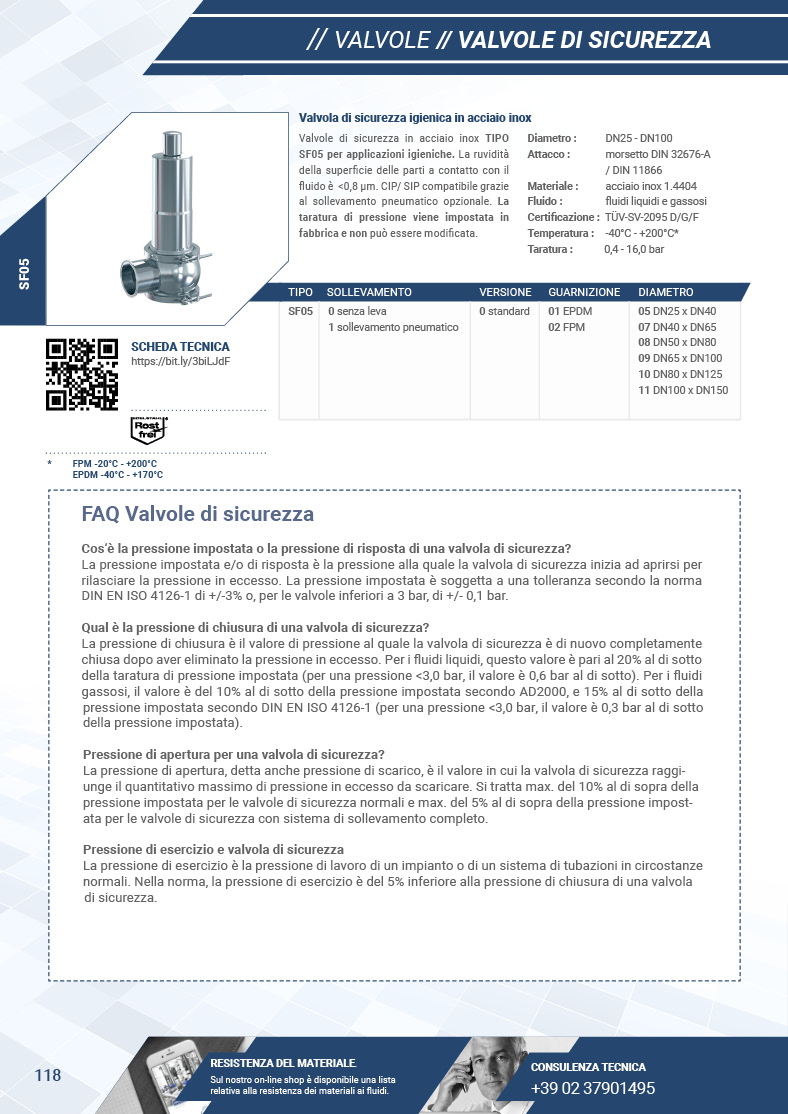 L'indice nelle ultime pagine del catalogo mostra per ogni articolo la disponibilità e le condizioni di richiesta dei certificati per le valvole.