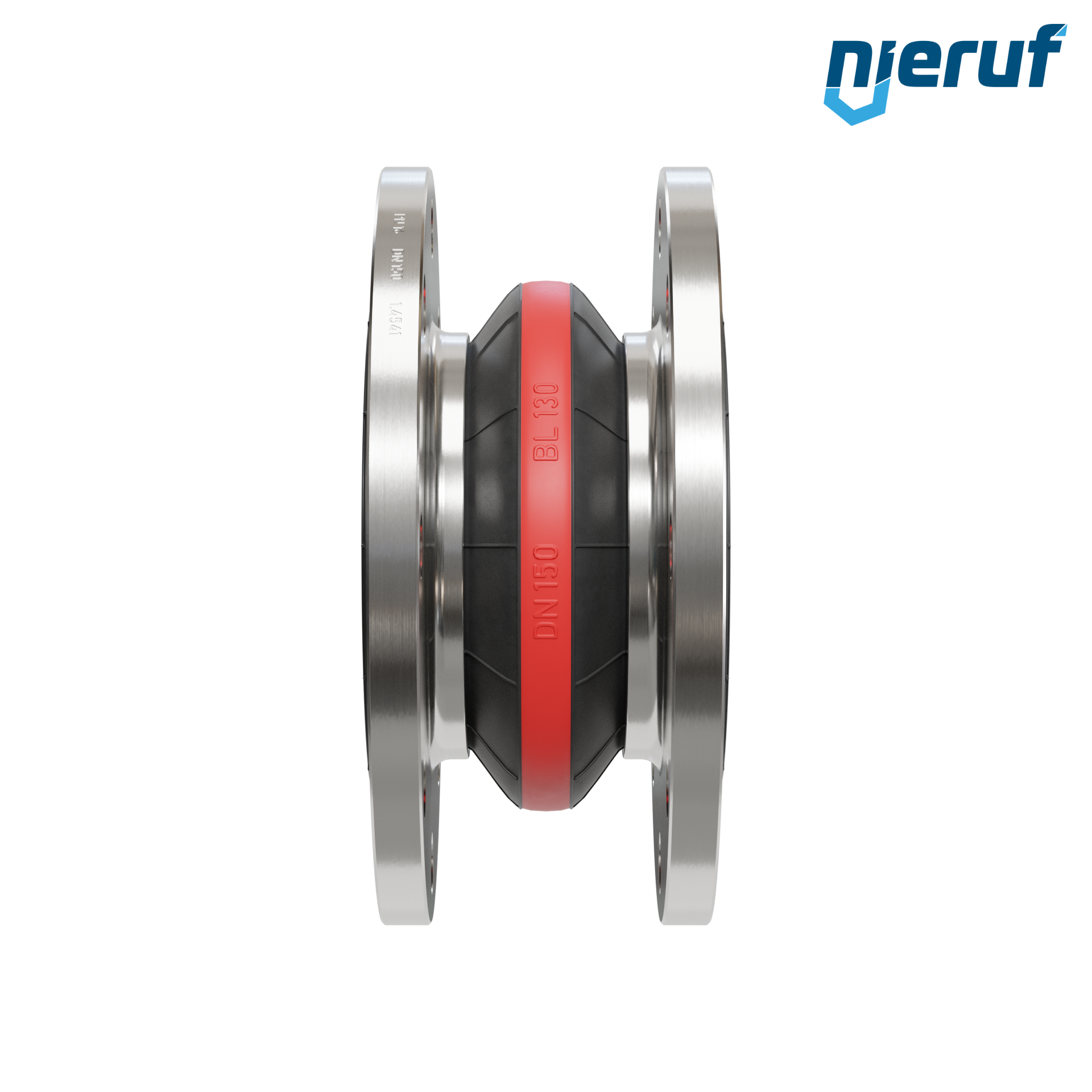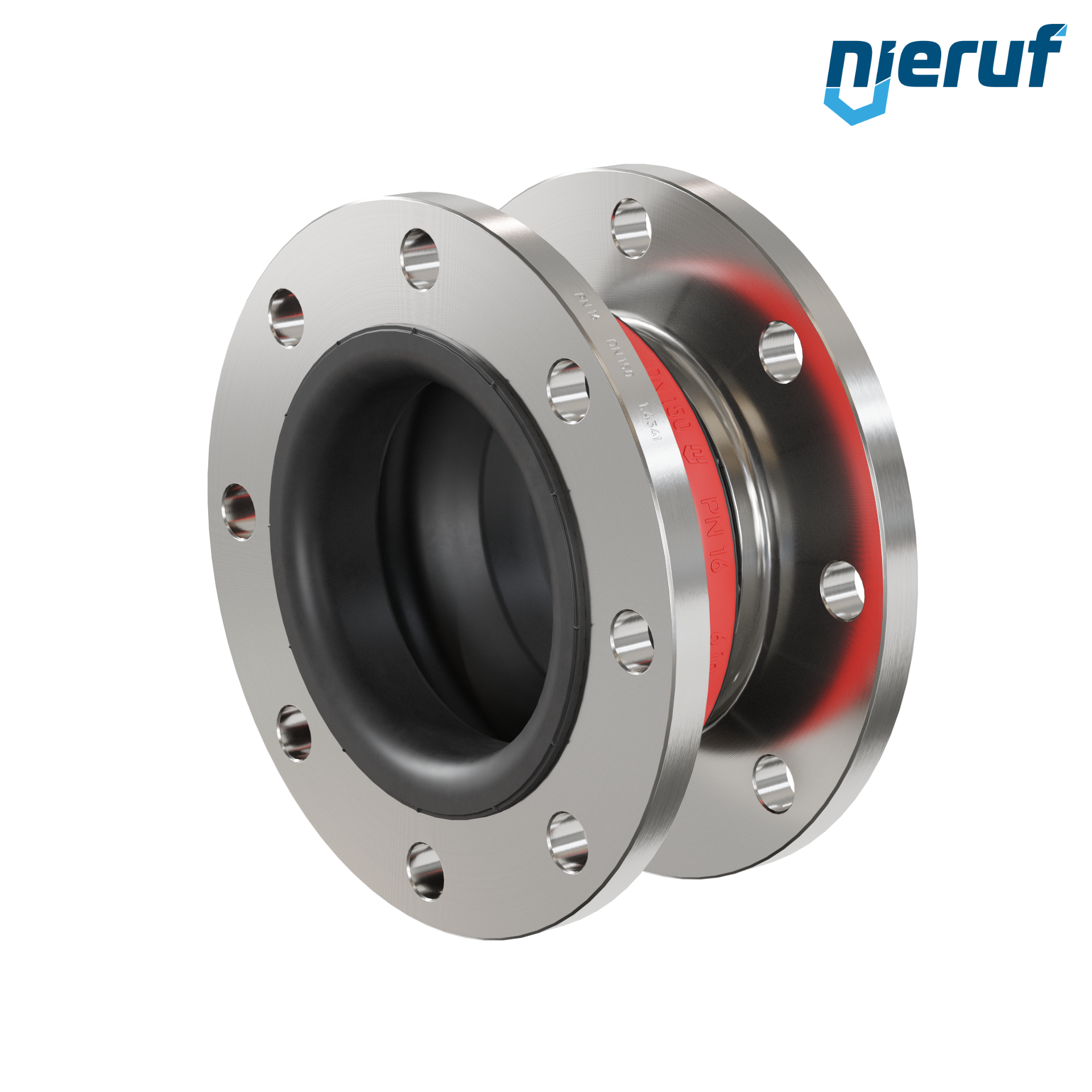 Compensatore in gomma di alta qualità con guarnizione in EPDM e flange in acciaio inossidabile ha l'approvazione ACS per l'acqua potabile. Questa versione può essere ampliata con un rivestimento in PTFE, anelli di supporto del vuoto e altre opzioni su richiesta.