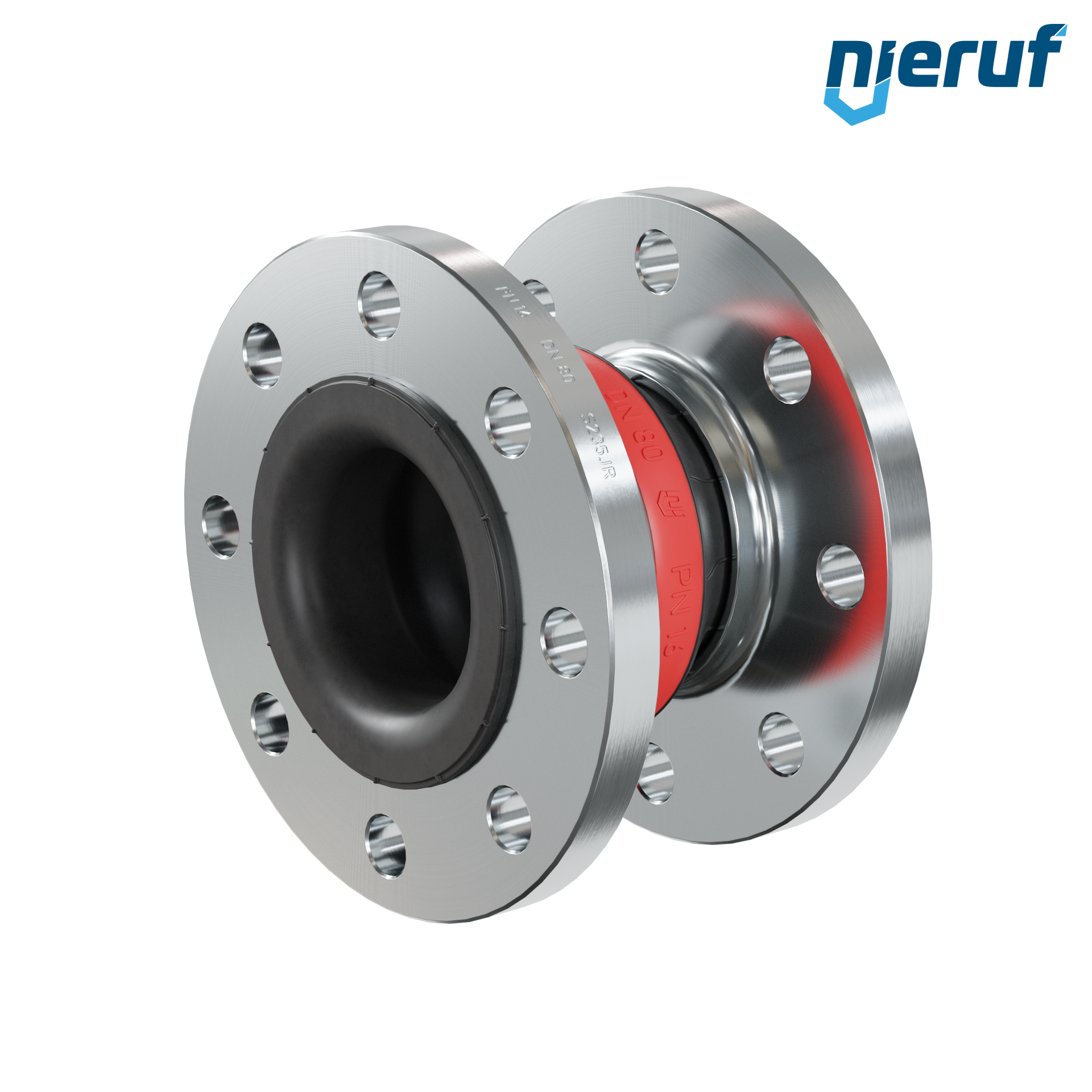 Compensatore in gomma di alta qualità con guarnizione in EPDM e flange in acciaio ha l'approvazione ACS per l'acqua potabile. Questa versione può essere ampliata con un rivestimento in PTFE, anelli di supporto del vuoto e altre opzioni su richiesta.