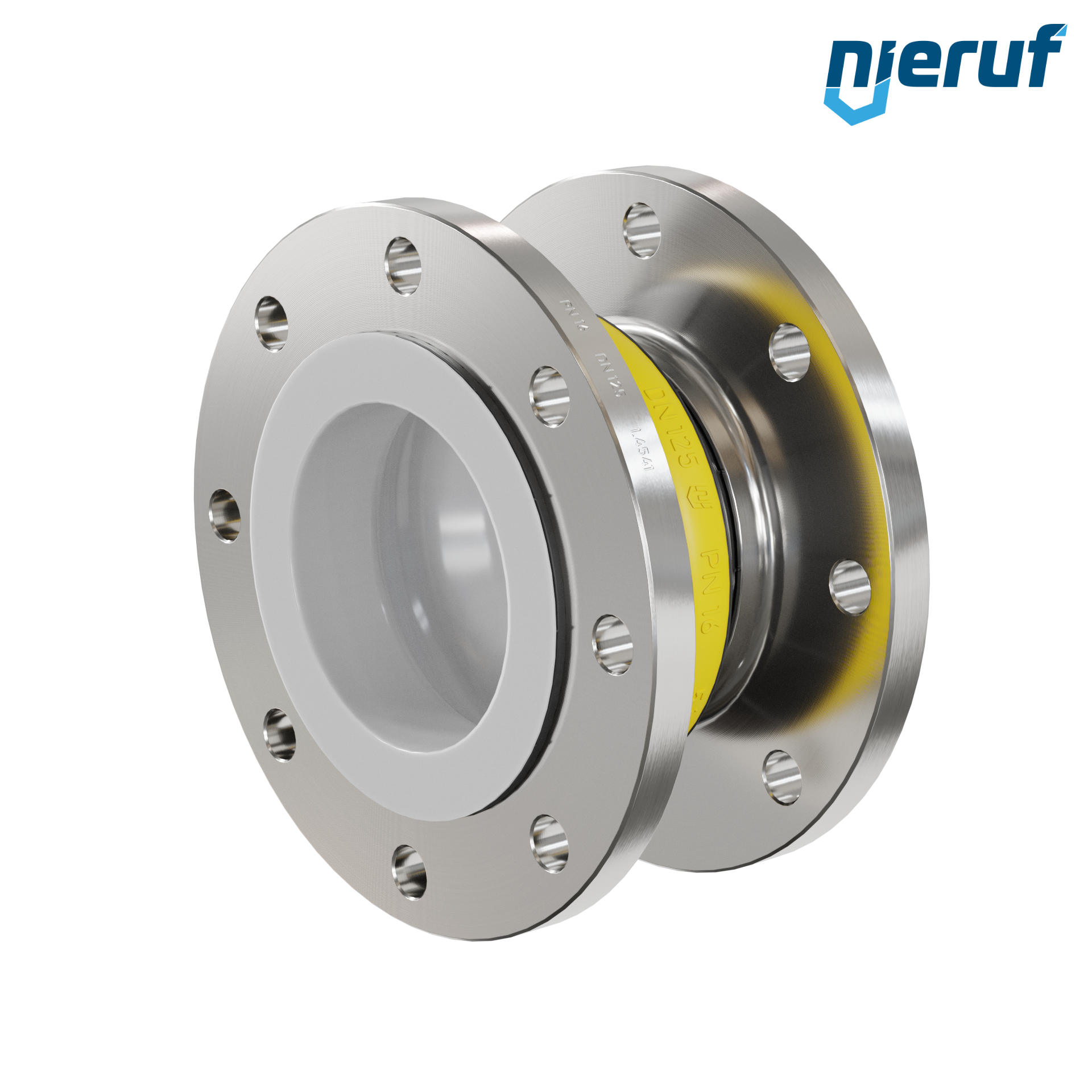 Compensatore di qualità con manicotto in NBR e flange in acciaio inox. Dispone della certificazione FDA. Inoltre è dotato di un rivestimento in PTFE, che gli conferisce un'elevata resistenza chimica grazie alla superficie interna liscia.