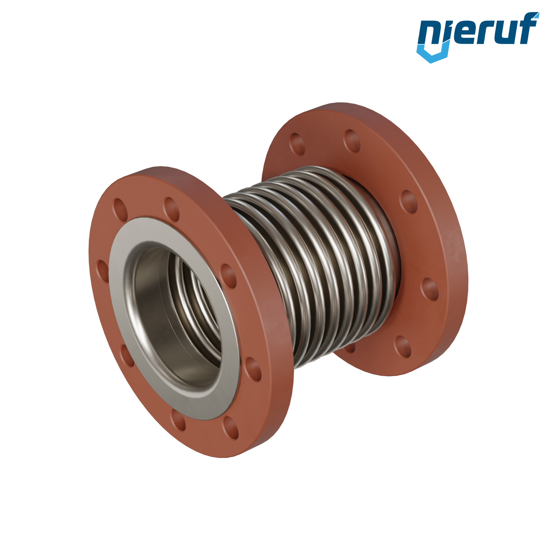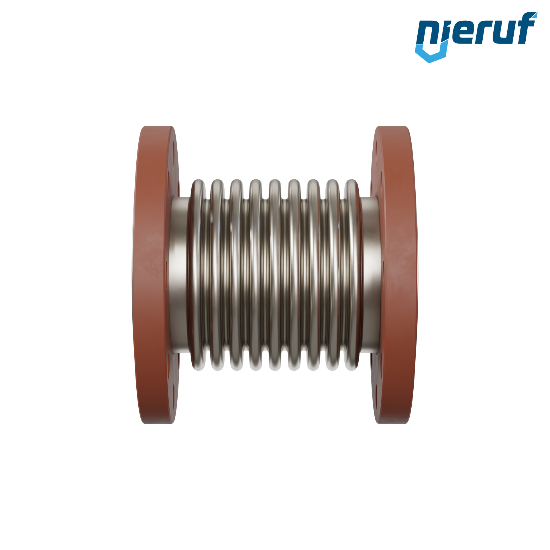 Giunto di dilatazione assiale di alta qualità con manicotto in acciaio inox e flange svasate in acciaio è idoneo per l'uso ad alte temperature e in condizioni difficili. Il modello è disponibile anche in altre dimensioni nominali, valori di pressione e ingombro, nonchè con rivestimento speciale e prolungato da un tubo di guida o protezione.