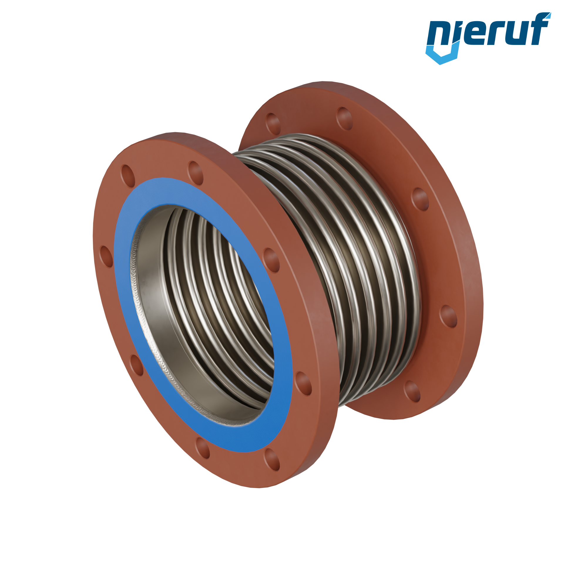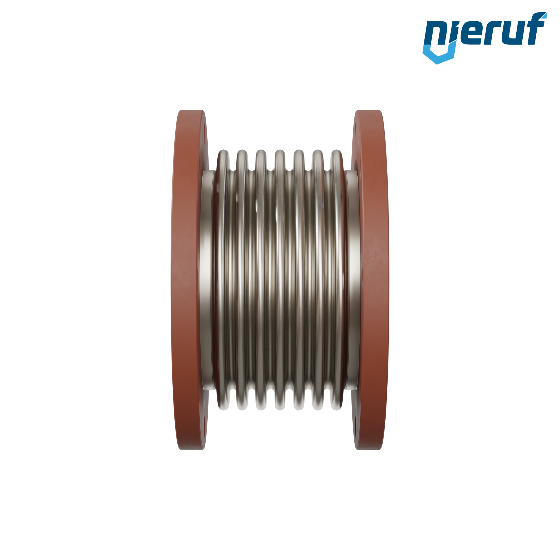 Giunto di dilatazione assiale di alta qualità con manicotto in acciaio inox e flange fisse in acciaio è idoneo per l'uso ad alte temperature e in condizioni difficili. Il modello è disponibile anche in altre dimensioni nominali, valori di pressione e ingombro, nonchè con rivestimento speciale e prolungato da un tubo di guida o protezione.