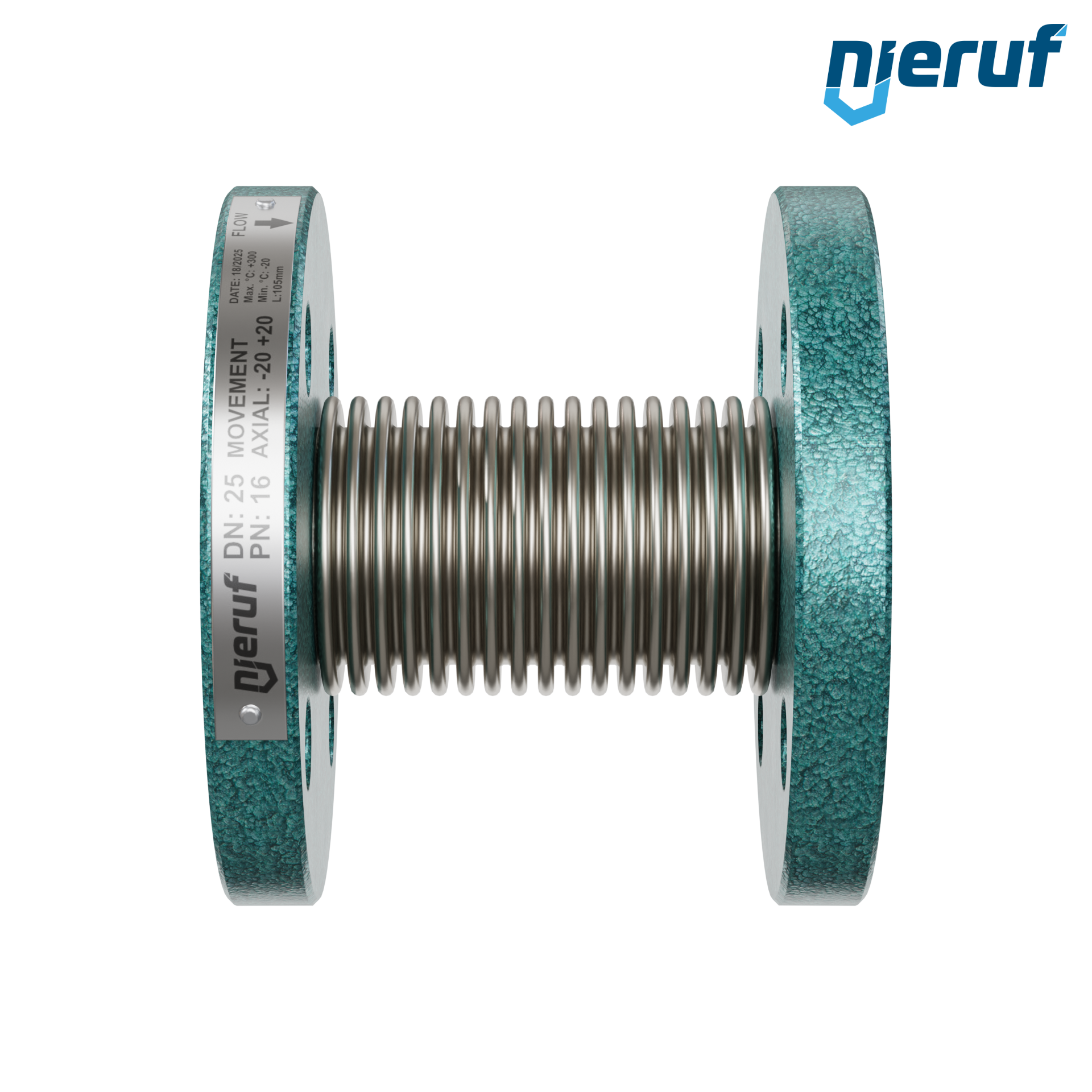 Giunto di dilatazione assiale DN25, manicotto e soffietto in acciaio inox 1.4541 / AISI 321 flangia DIN EN 1092-1 PN 10/16