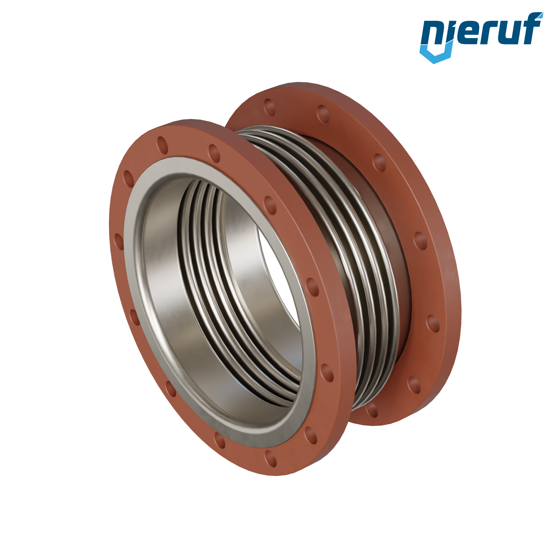Giunto di dilatazione assiale di alta qualità con manicotto in acciaio inox e flange svasate in acciaio è idoneo per l'uso ad alte temperature e in condizioni difficili. Il modello è disponibile anche in altre dimensioni nominali, valori di pressione e ingombro, nonchè con rivestimento speciale e prolungato da un tubo di guida o protezione.