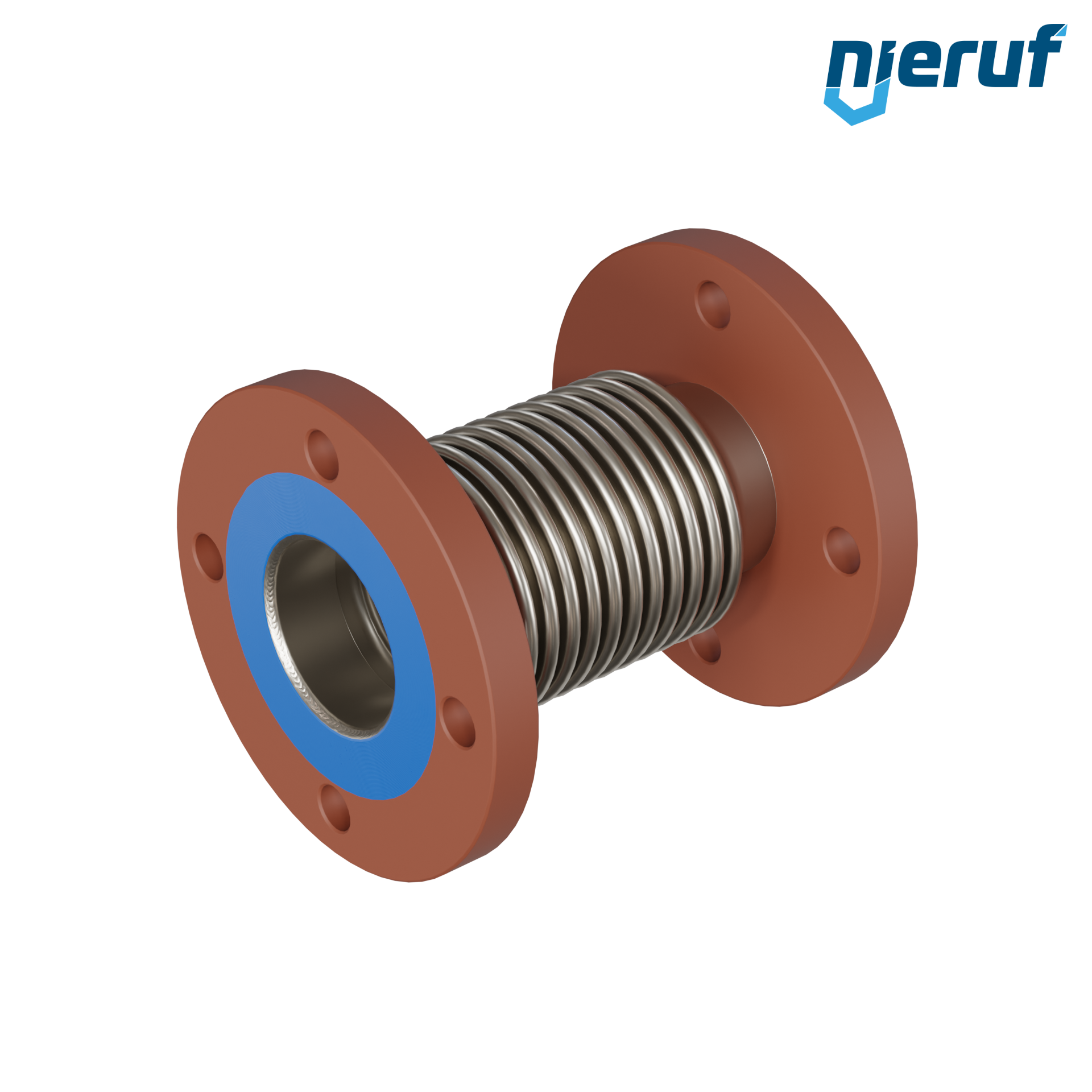 Giunto di dilatazione assiale di alta qualità con manicotto in acciaio inox e flange fisse in acciaio è idoneo per l'uso ad alte temperature e in condizioni difficili. Il modello è disponibile anche in altre dimensioni nominali, valori di pressione e ingombro, nonchè con rivestimento speciale e prolungato da un tubo di guida o protezione.