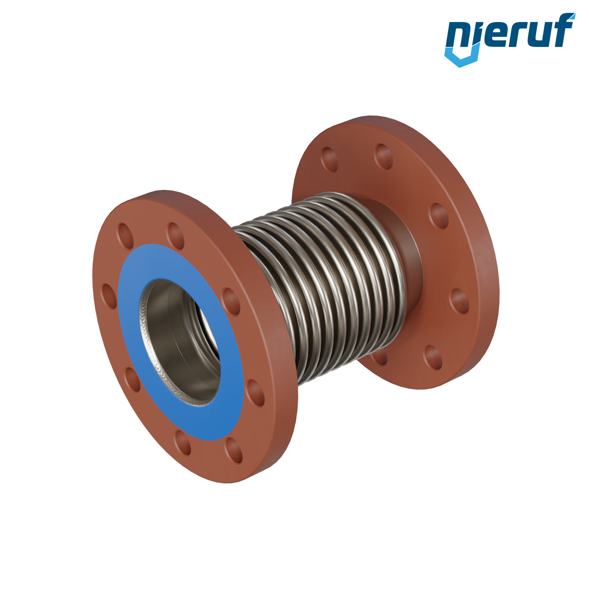 Giunto di dilatazione assiale di alta qualità con manicotto in acciaio inox e flange fisse in acciaio è idoneo per l'uso ad alte temperature e in condizioni difficili. Il modello è disponibile anche in altre dimensioni nominali, valori di pressione e ingombro, nonchè con rivestimento speciale e prolungato da un tubo di guida o protezione.