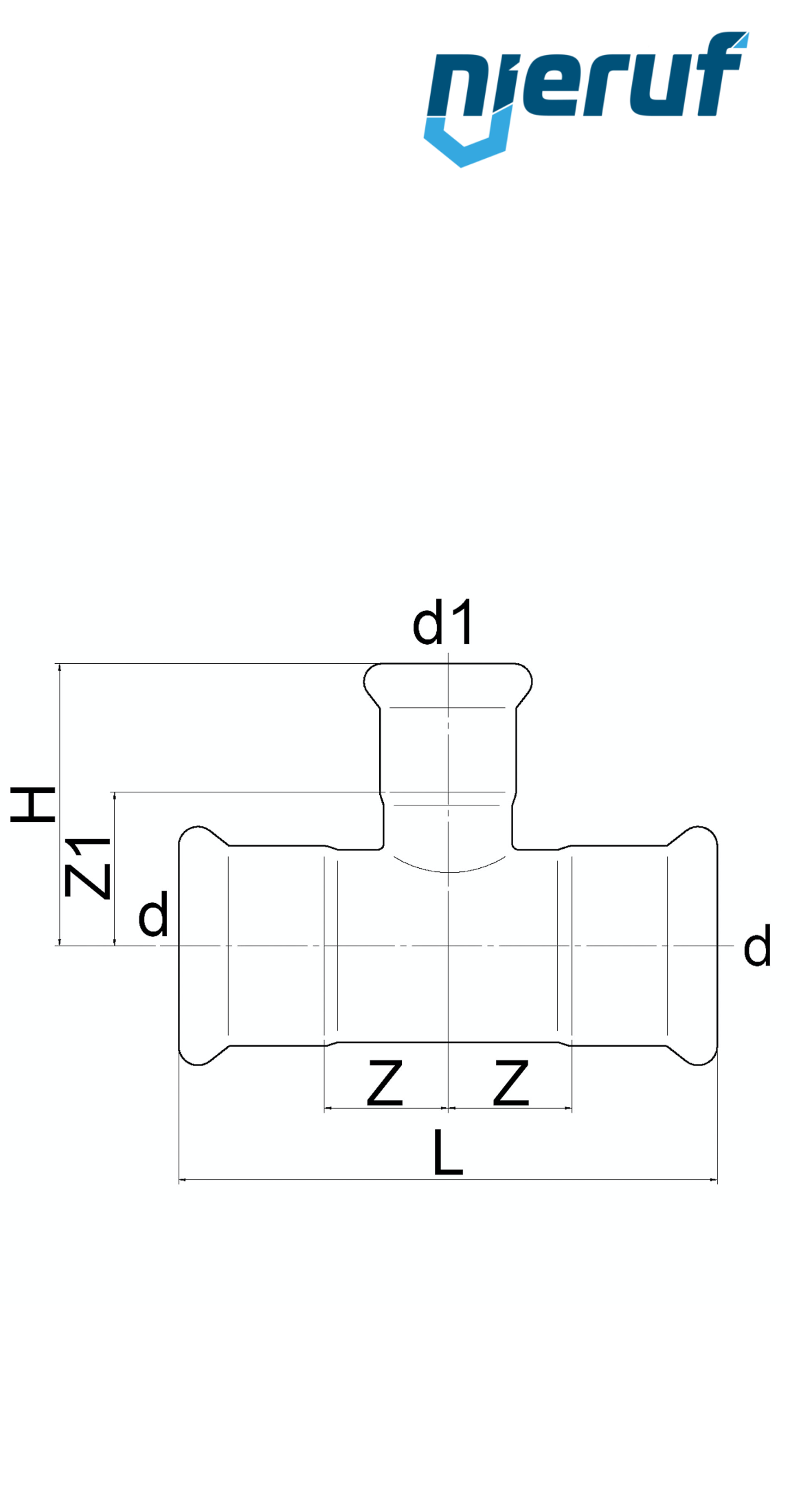 Raccordo a T PF01-01 con attacco a pressare F x F DN25 - 28,0 mm, filettatura esterna 1/2" pollice in acciaio inox per fluidi liquidi & gassosi