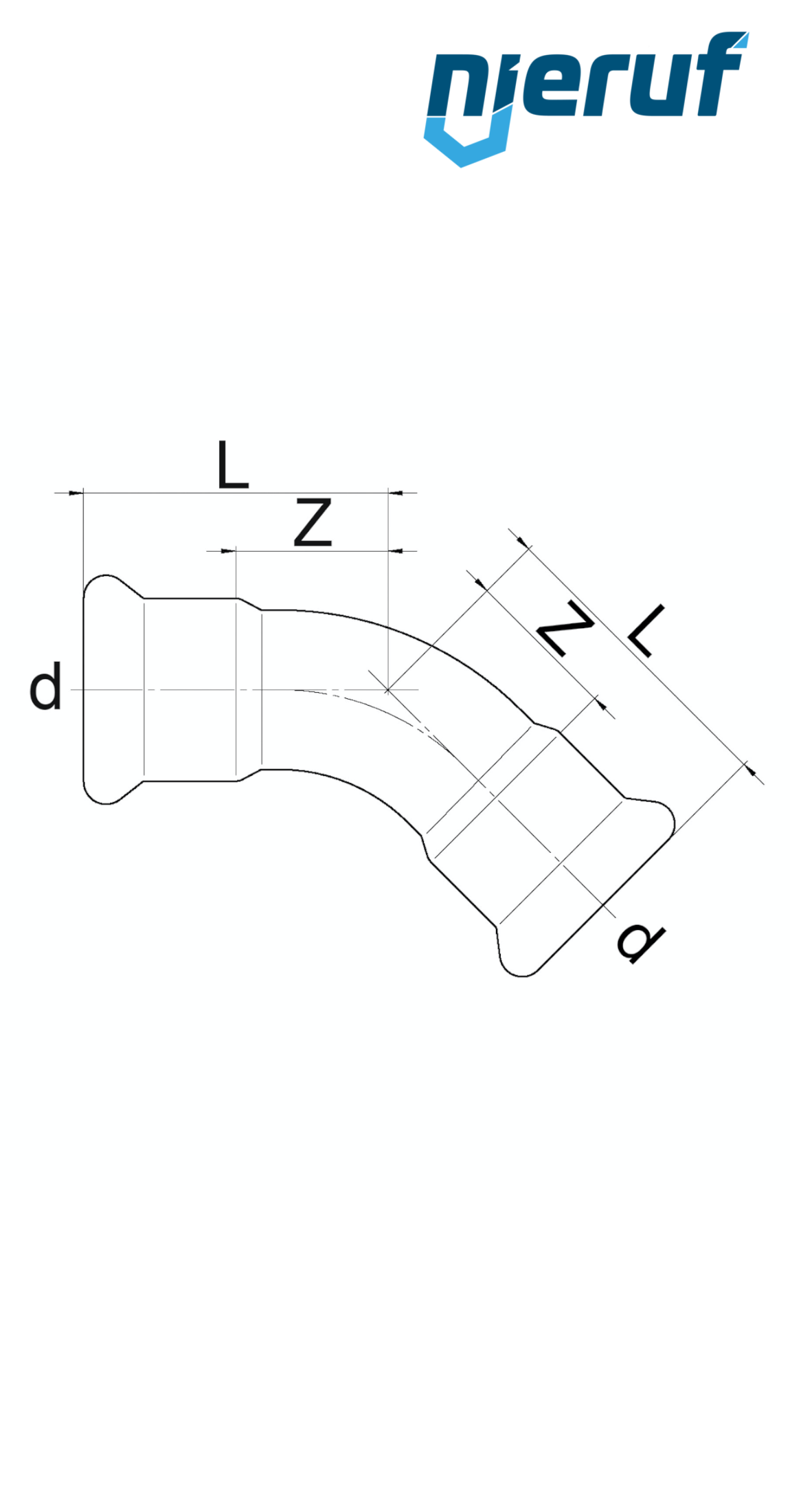 Raccordo a gomito 45° PF01-00 con attacco a pressare F x F DN20 - 22,0 mm in acciaio inox per fluidi liquidi & gassosi