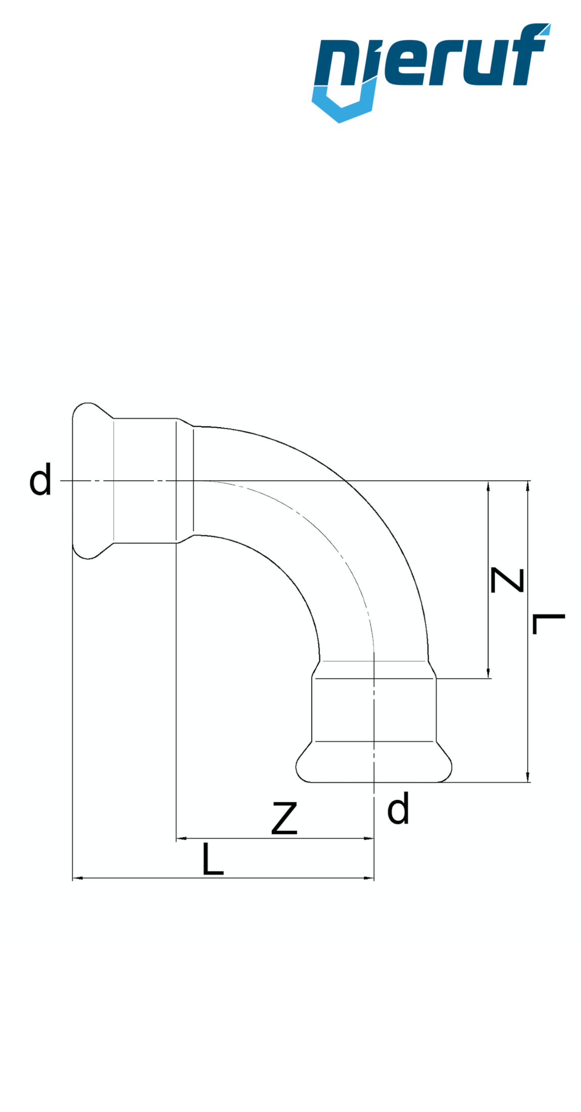 Raccordo a gomito 90° PF01-00 con attacco a pressare F x F DN50 - 54,0 mm aus acciaio inox per fluidi liquidi & gassosi
