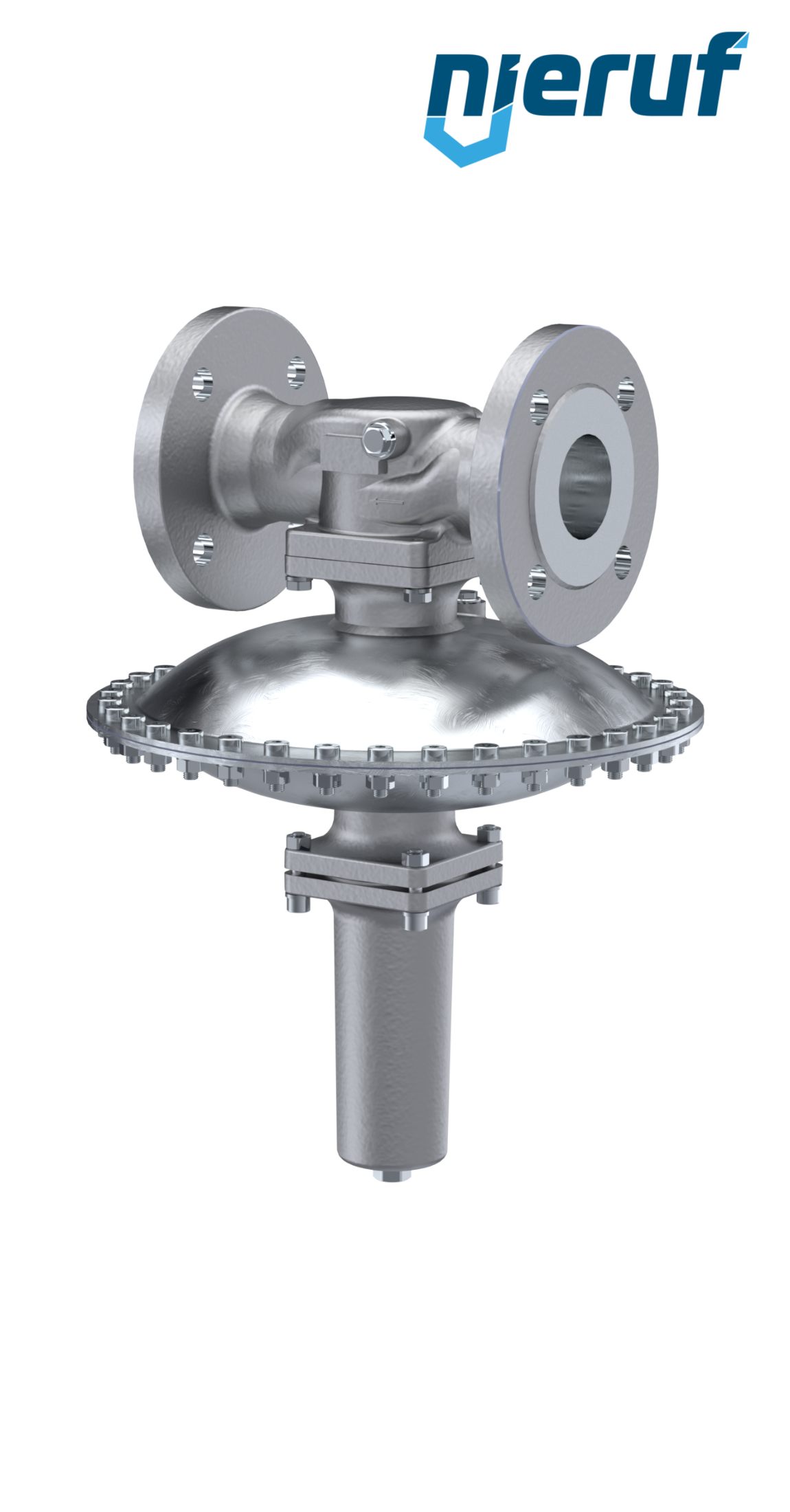 Regolatore in mbar DN40 con flange ANSI 150 per sostanze liquide e gassose neutre e guarnizione in EPDM, impostazione della pressione 150 - 500 mbar