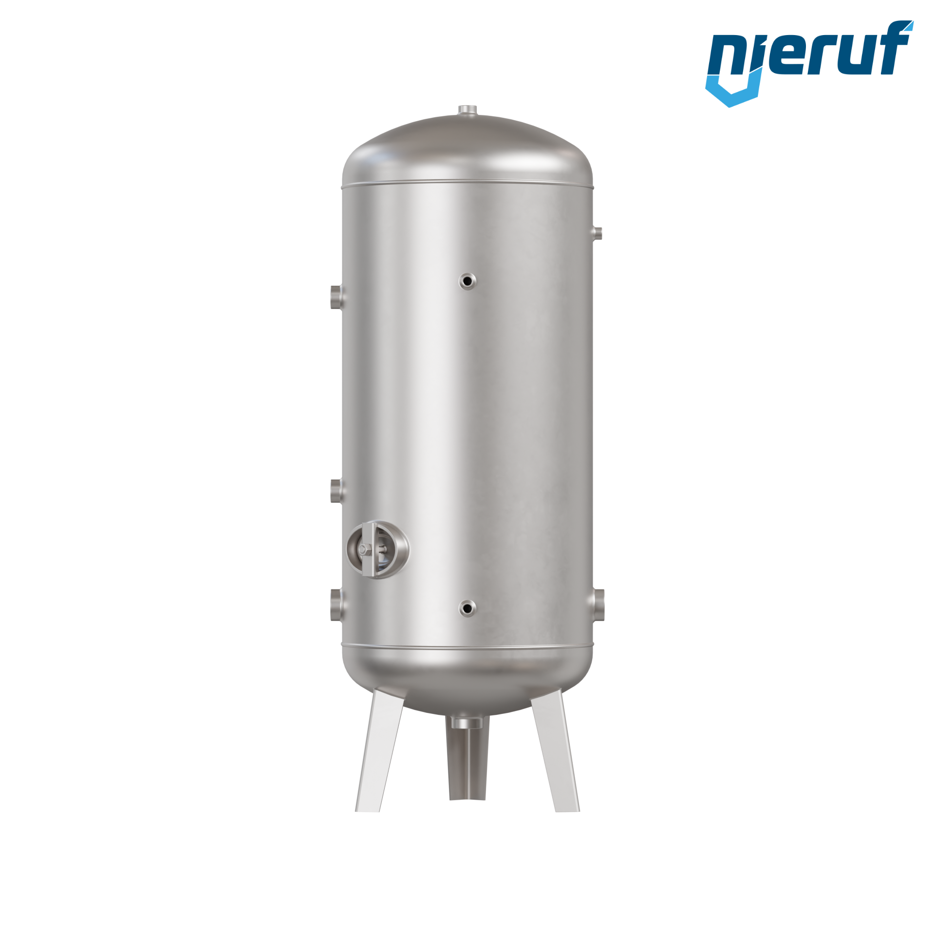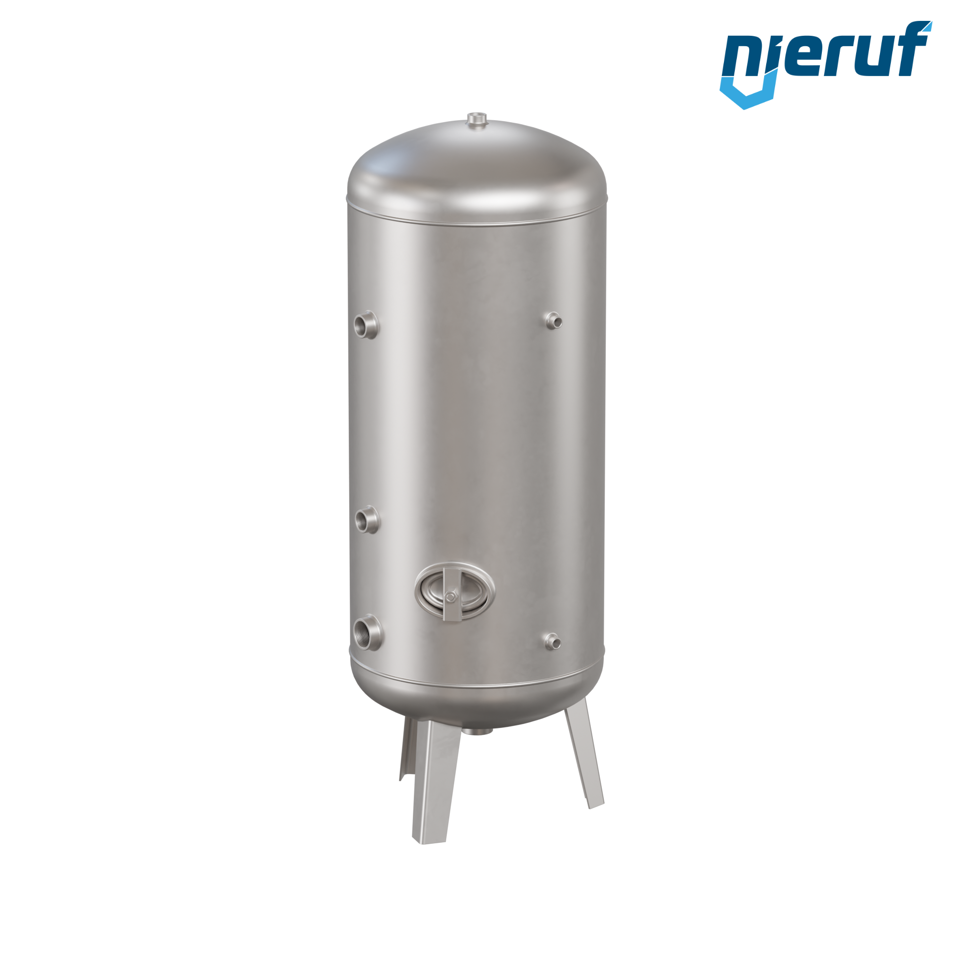 Serbatoio a pressione per acqua BE04 con 300 litri di volume versione verticale con pressione di esercizio 0-6 bar in acciaio inox AISI 316Ti e diametro 550 mm