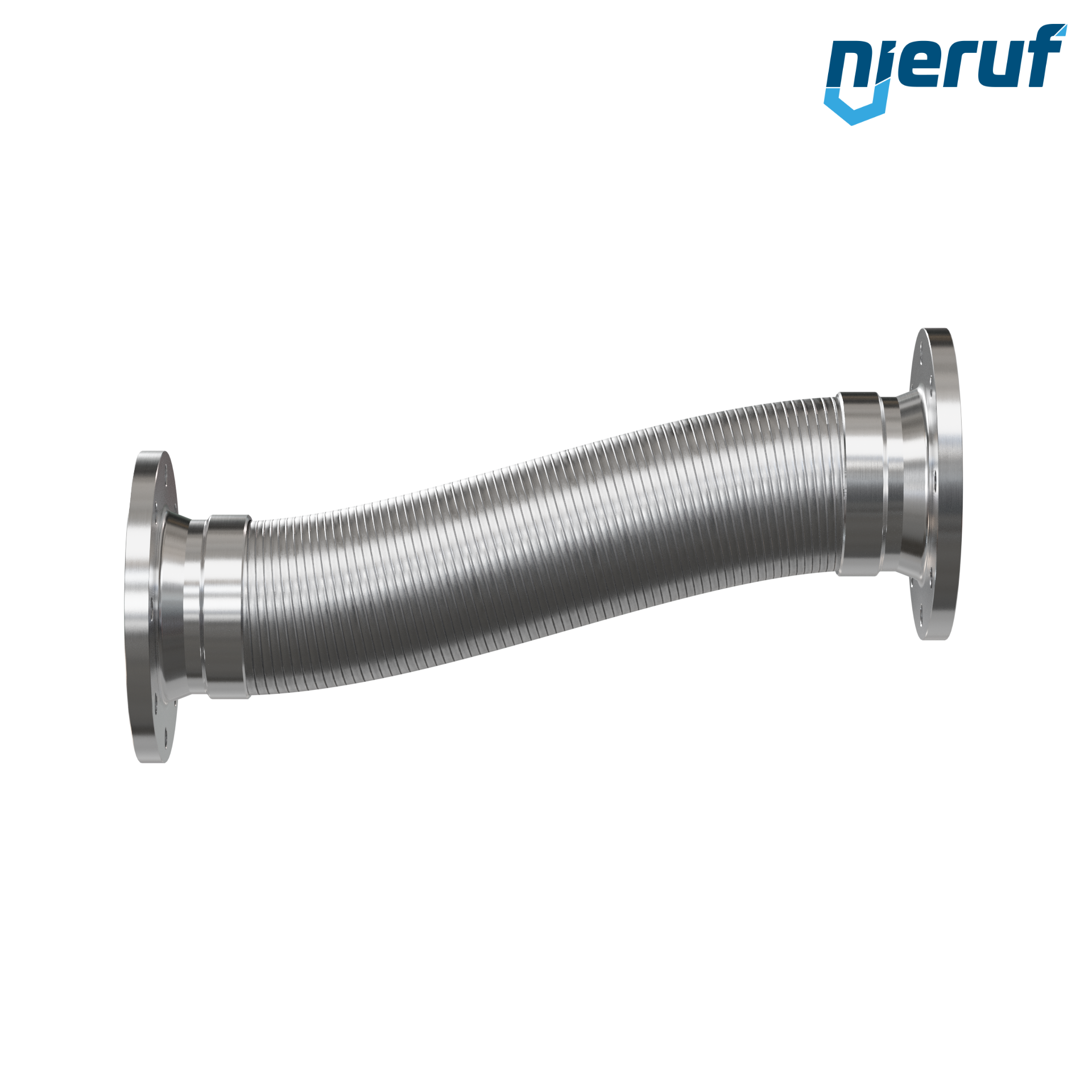 Tubo corrugato in acciaio inossidabile con flangia fissa da entrambi i lati EN 1092-01 tipo 11 PN 16 e treccia doppia Diametro DN125 - 5" pollici con 500 mm Lunghezza e 16 bar max. Pressione
