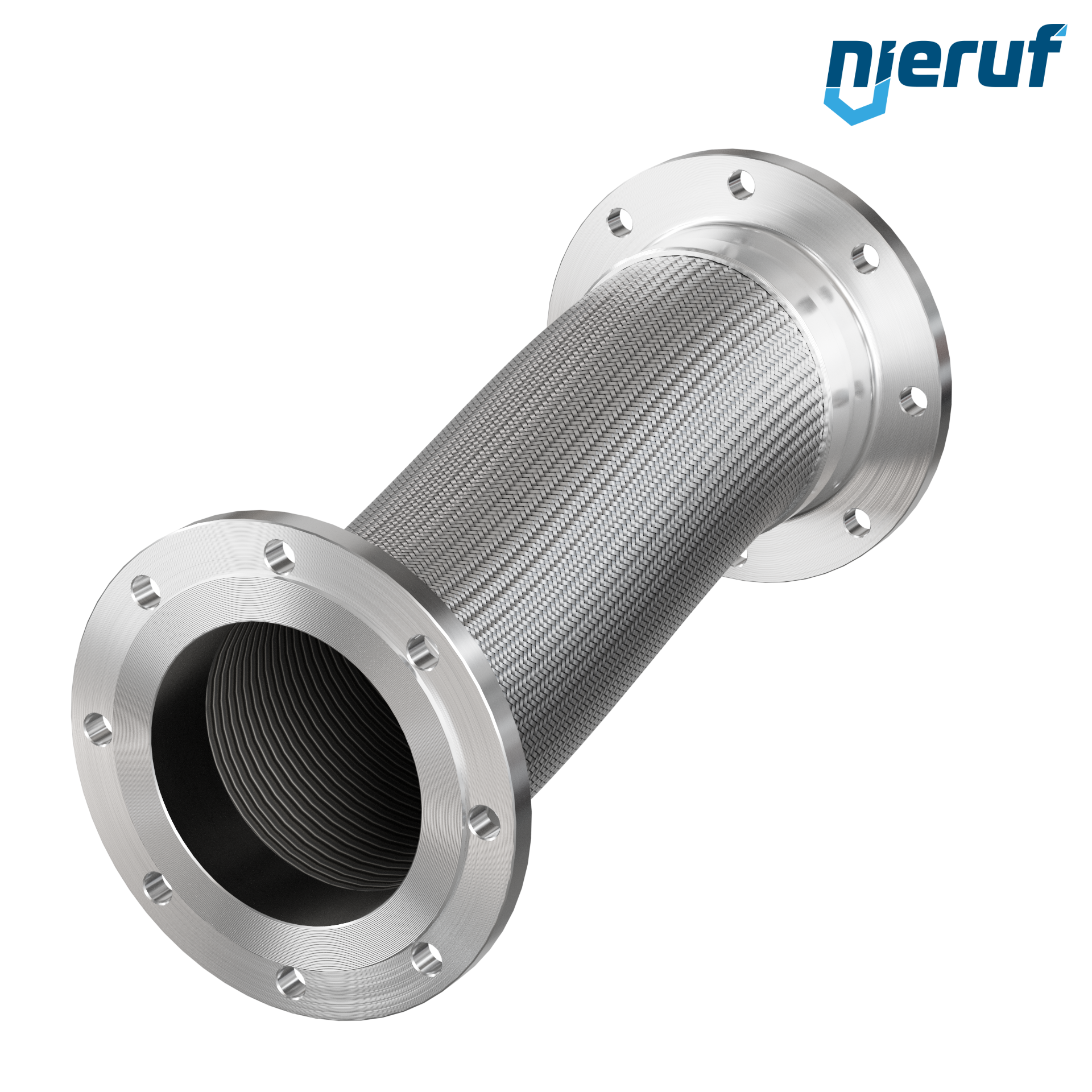 Tubo corrugato in acciaio inossidabile con flangia fissa da entrambi i lati EN 1092-01 tipo 11 PN 10 e treccia singola Diametro DN200 - 8" pollici con 1000 mm Lunghezza e 6 bar max. Pressione