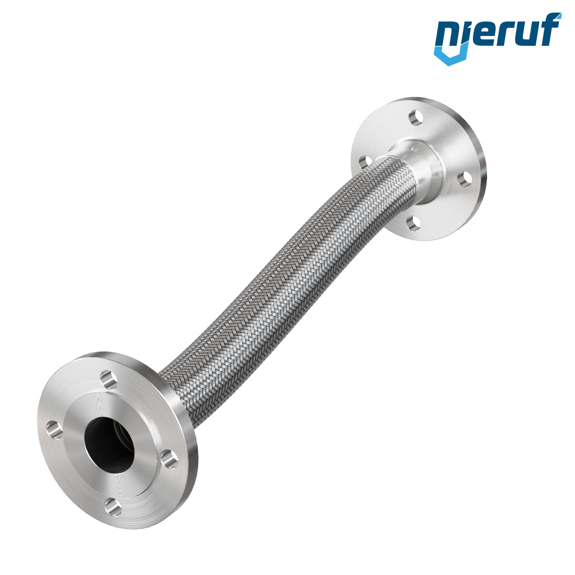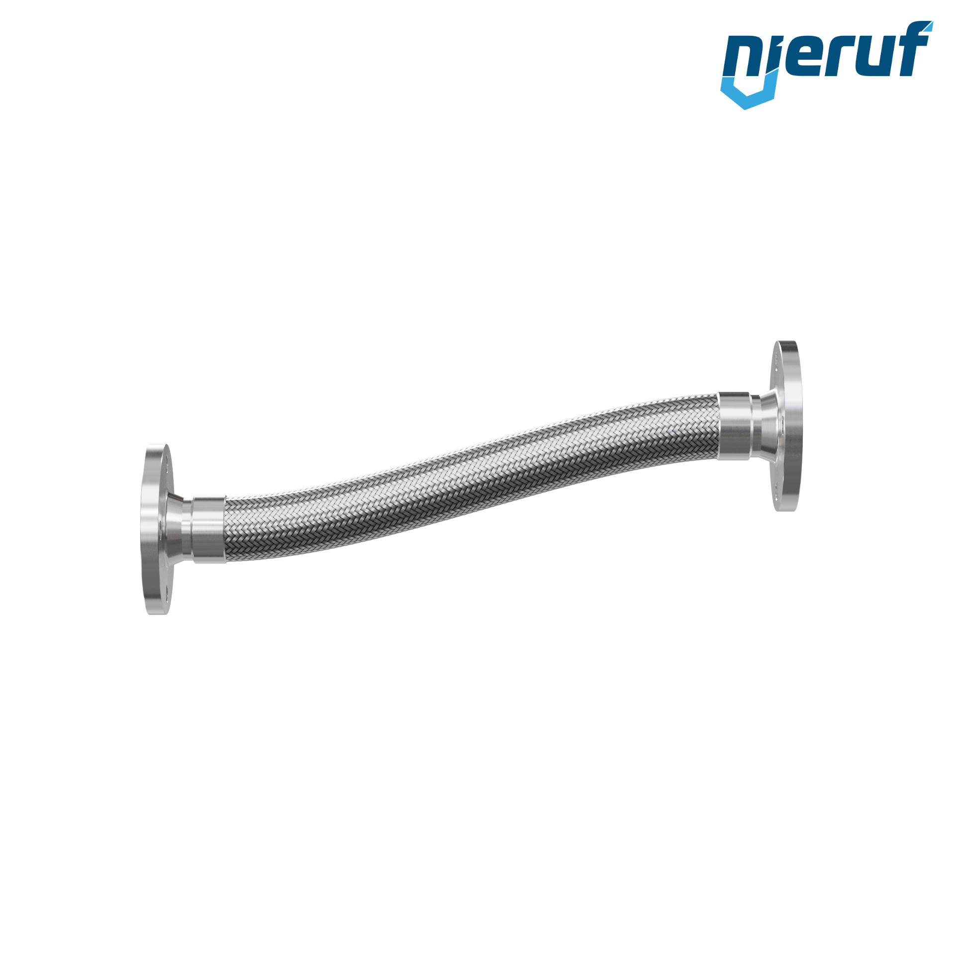 Tubo corrugato in acciaio inossidabile con flangia fissa da entrambi i lati EN 1092-01 tipo 11 PN 16 e treccia singola Diametro DN50 - 2" pollici con 1000 mm Lunghezza e 16 bar max. Pressione