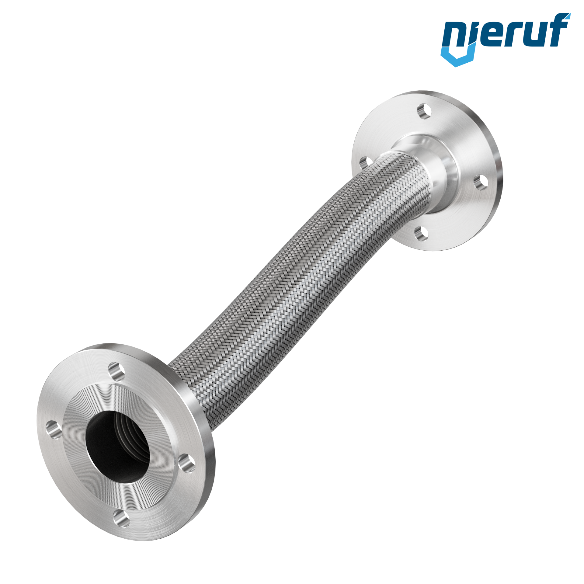 Tubo corrugato in acciaio inossidabile con flangia fissa da entrambi i lati EN 1092-01 tipo 11 PN 16 e treccia singola Diametro DN65 - 2 1/2" pollici con 1000 mm Lunghezza e 16 bar max. Pressione