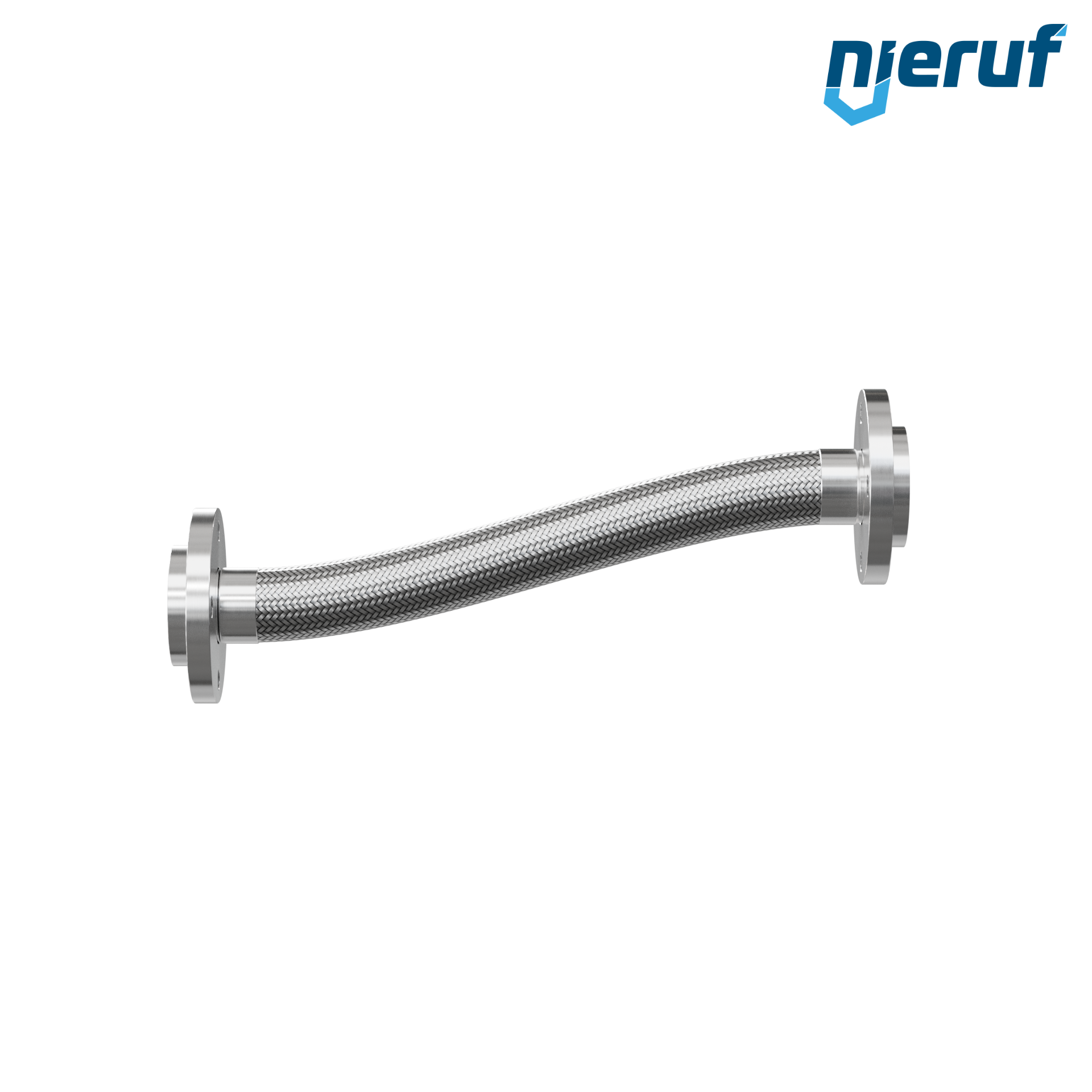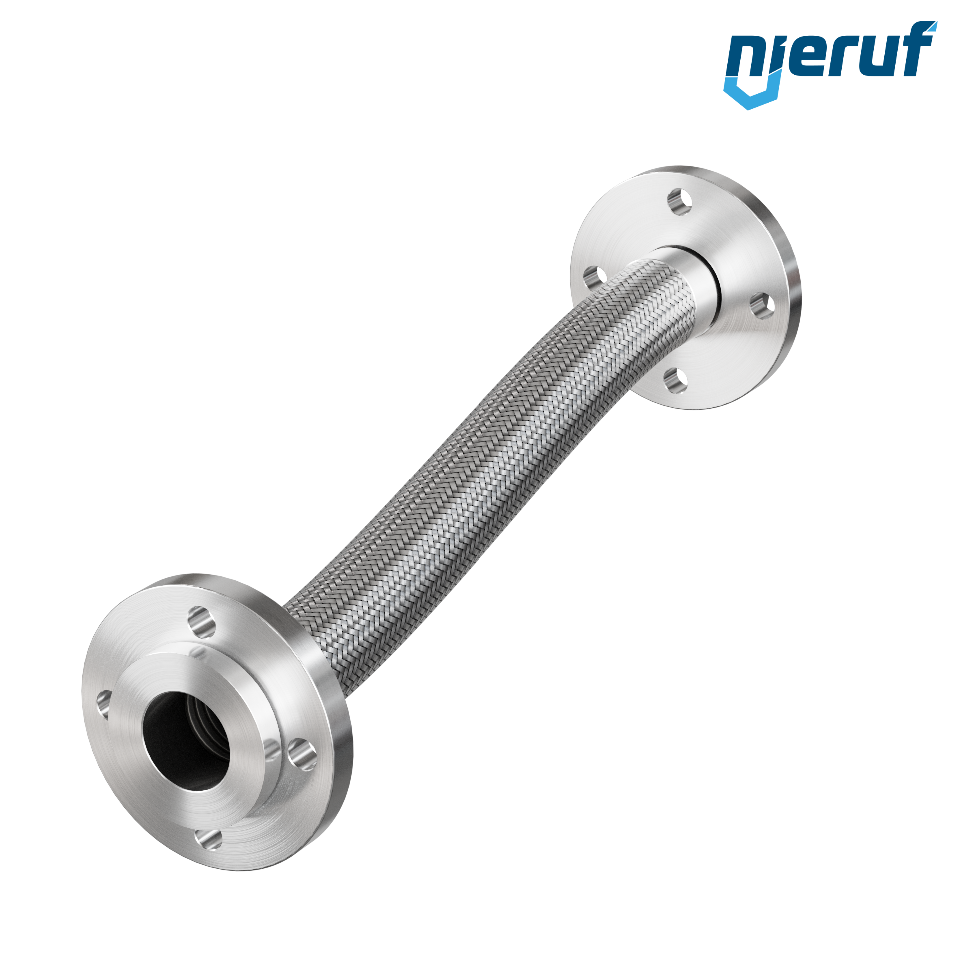 Tubo corrugato in acciaio inossidabile con flangia girevole da entrambi i lati EN 1092-01 tipo 02 PN 40 con collarino e treccia singola Diametro DN50 - 2" pollici con 1000 mm Lunghezza e 16 bar max. Pressione