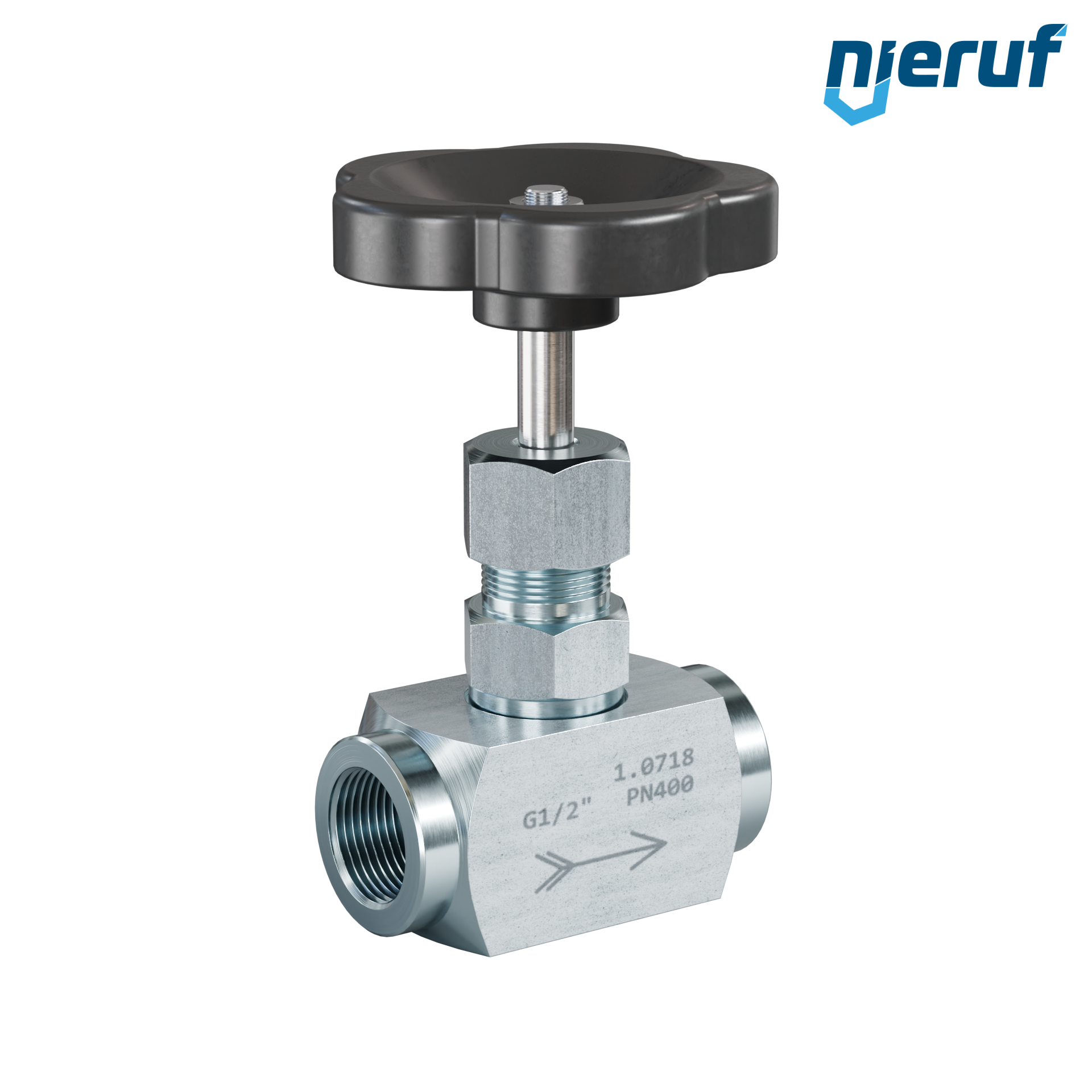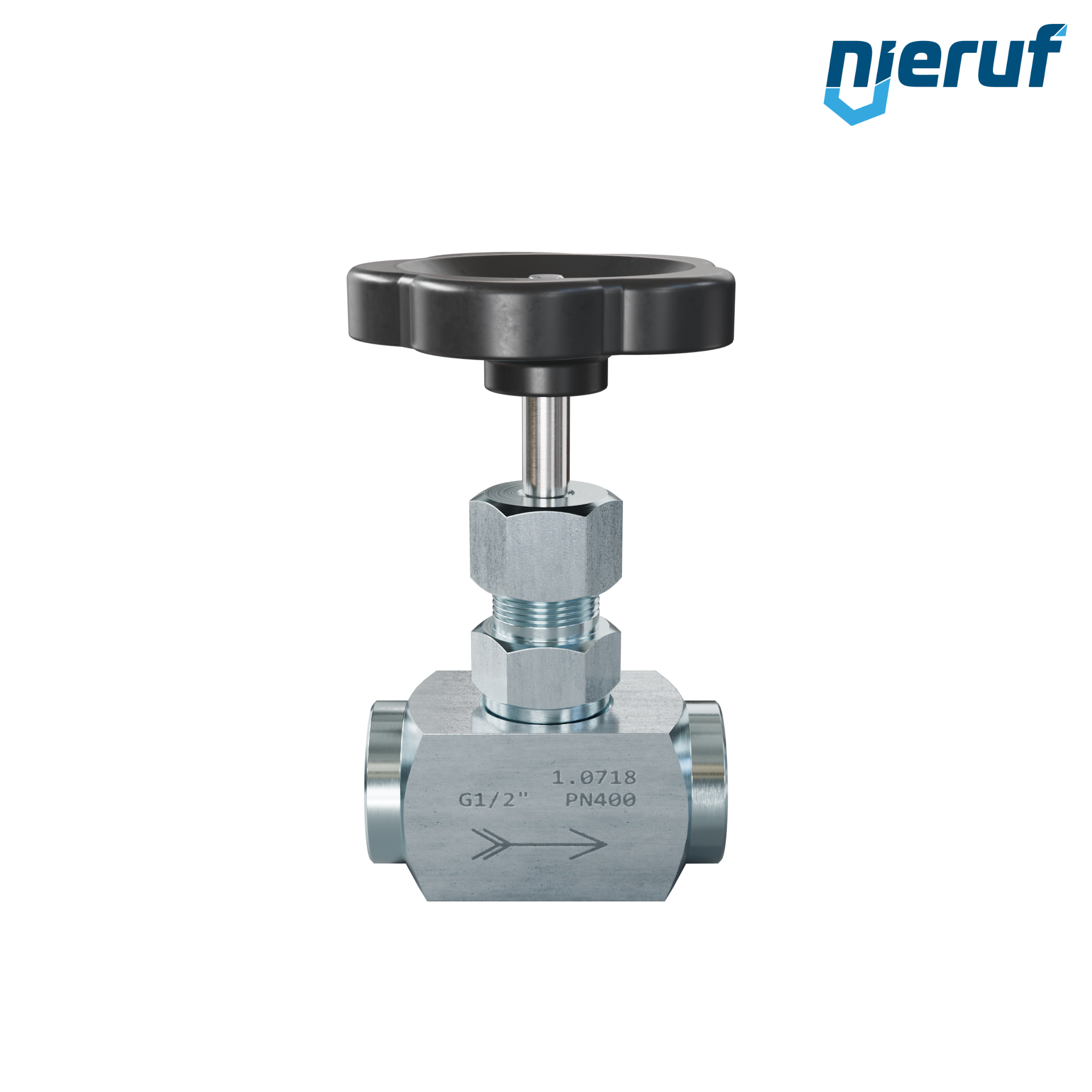 valvola a spillo 1/2" pollici versione con filettatura interna in acciaio (zincato blu) per fluidi liquidi e gassosi pressione fino ad un massimo di 400 bar