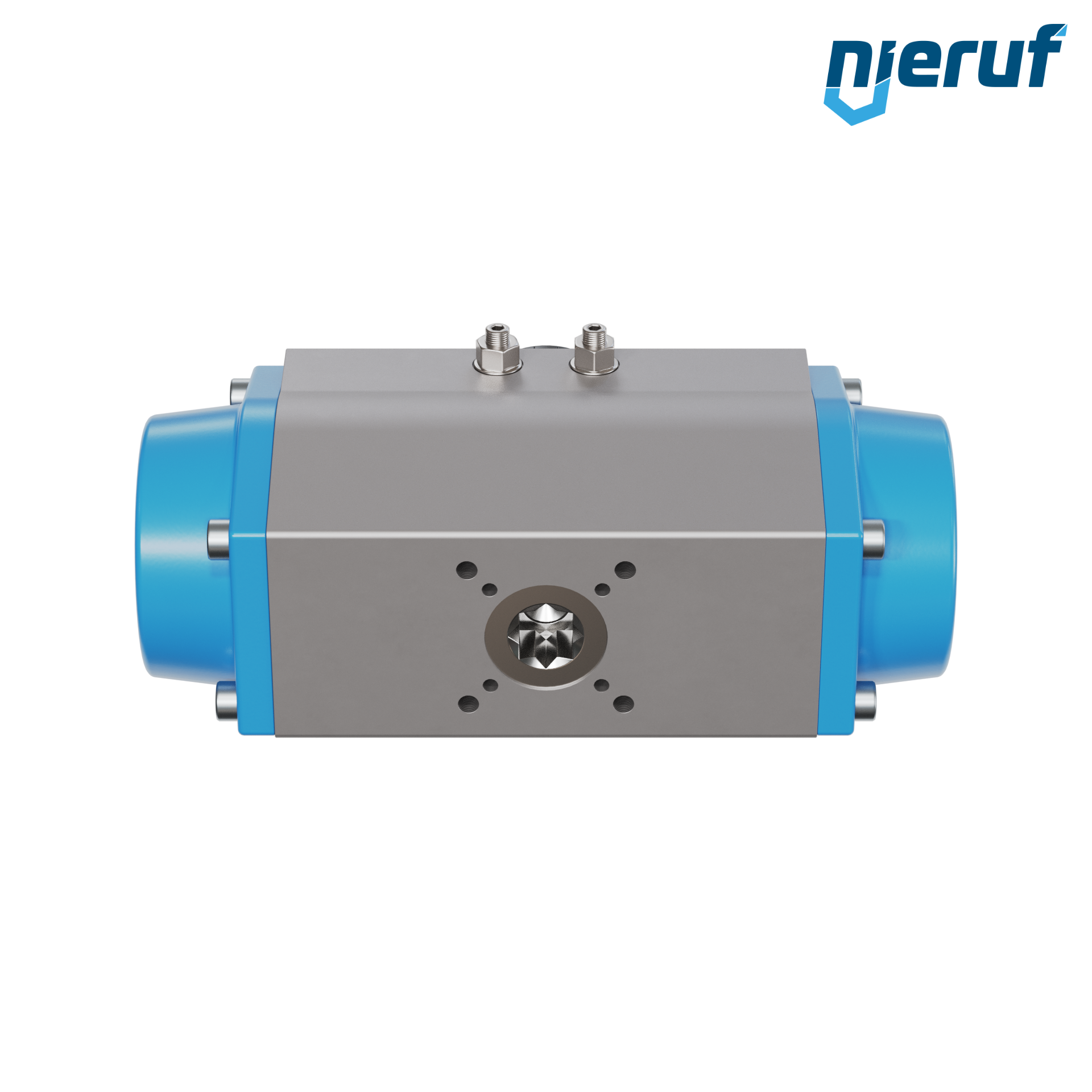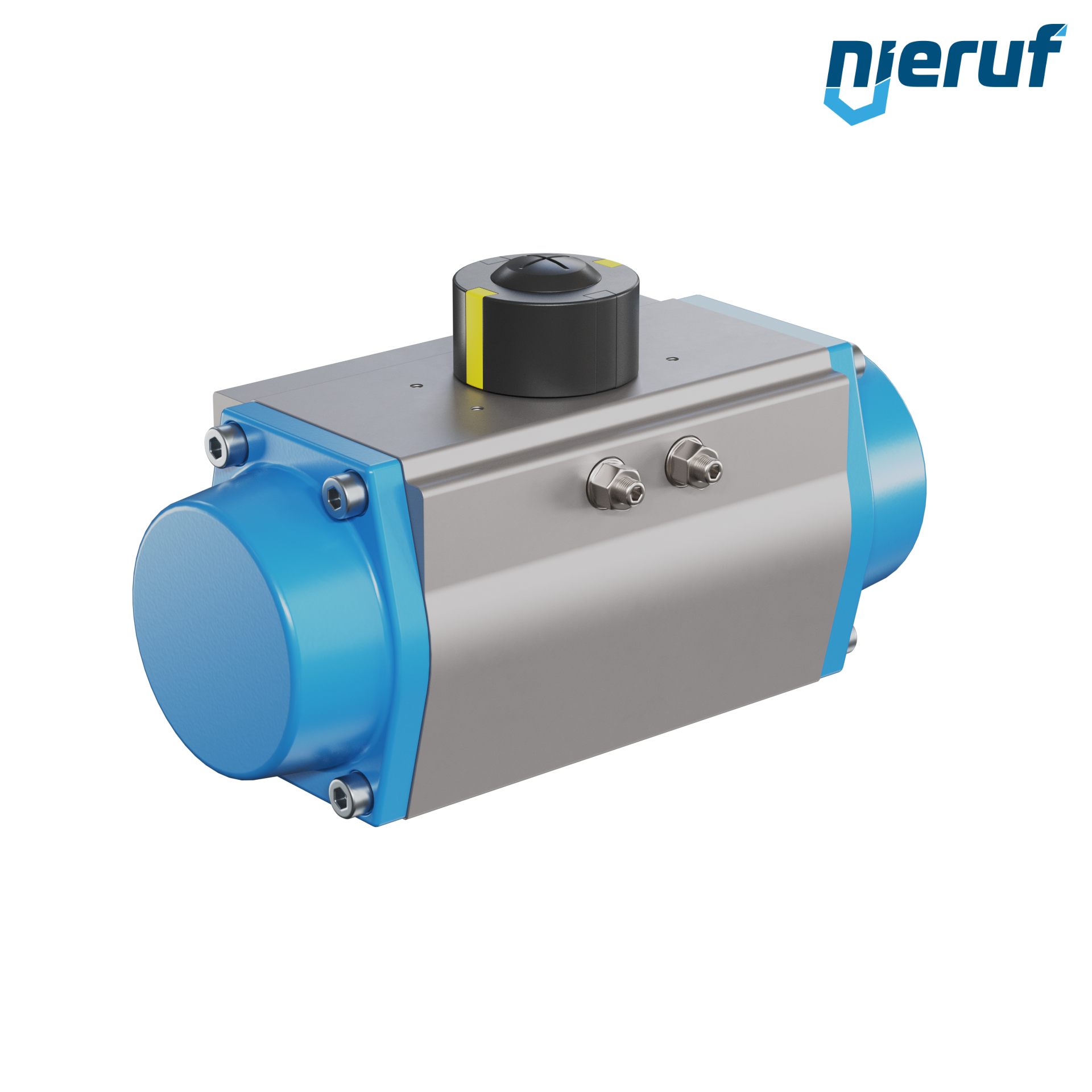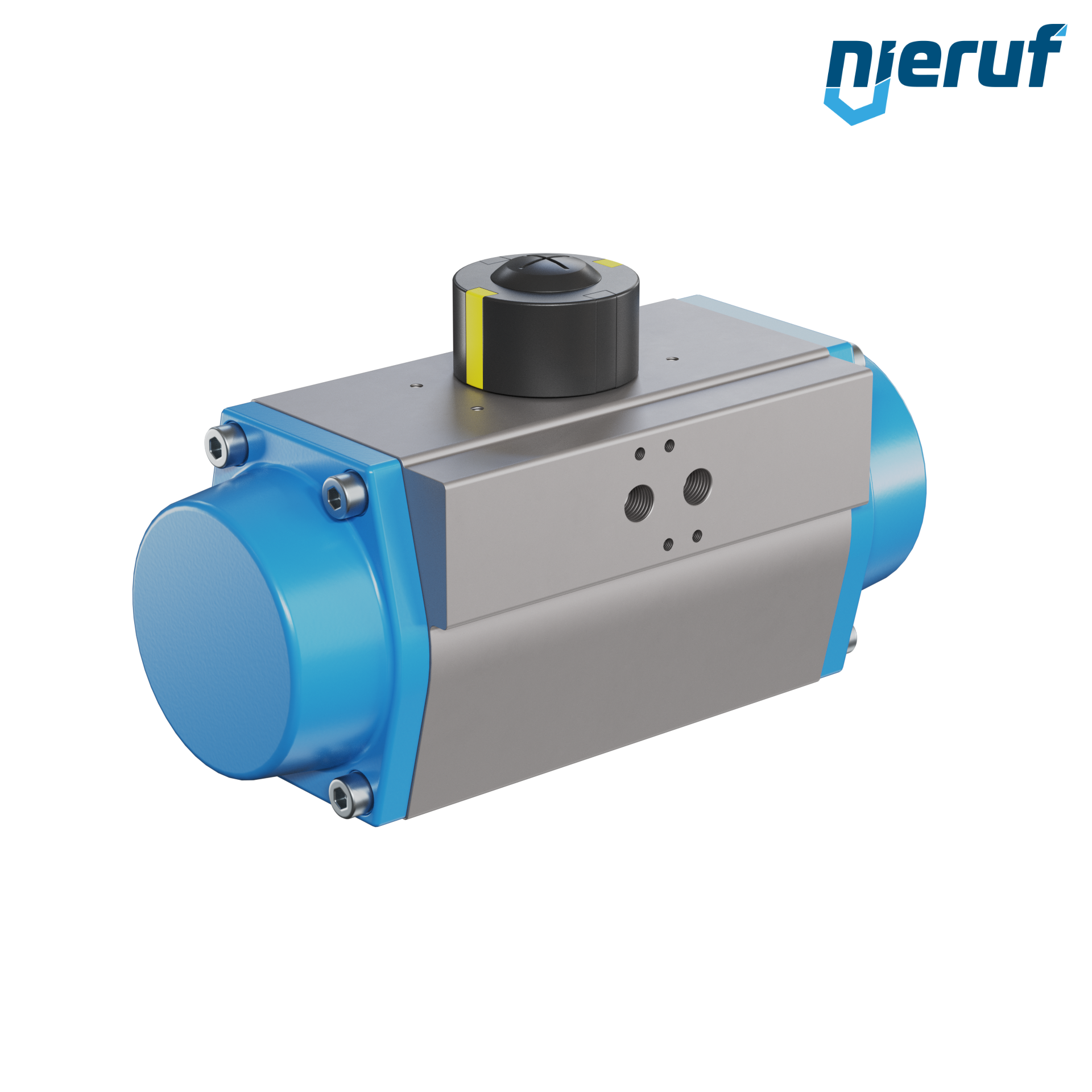 Attuatore pneumatico dal design compatto a semplice effetto versione con apertura a molla per il controllo e la regolazione delle valvole. Angolo di rotazione preimpostato a 90° con indicatore visivo della posizione.