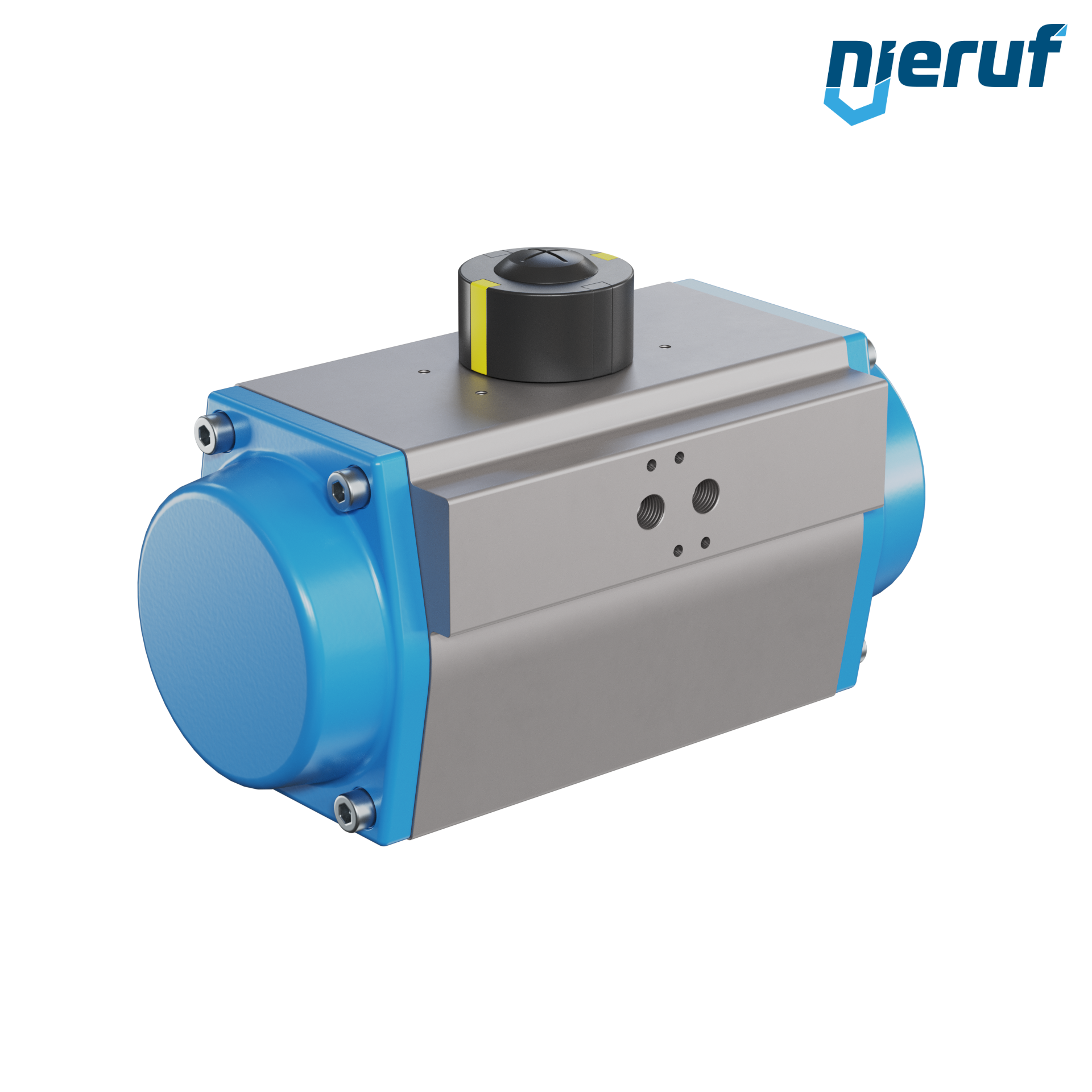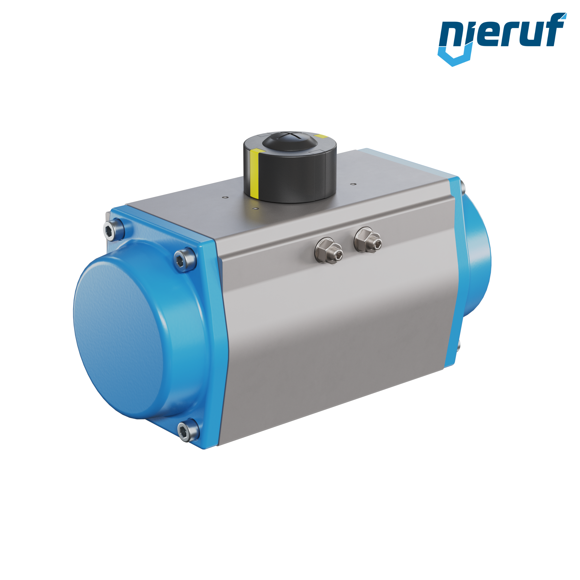 | Caratteristica del prodotto | Attuatore pneumatico dal design compatto a semplice effetto versione con apertura a molla per il controllo e la regolazione delle valvole. Angolo di rotazione preimpostato a 90° con indicatore visivo della posizione. |