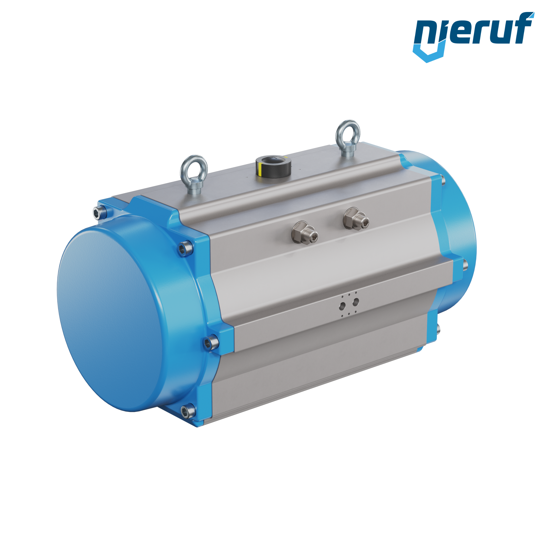 | Caratteristica del prodotto | Attuatore pneumatico dal design compatto a semplice effetto versione con apertura a molla per il controllo e la regolazione delle valvole. Angolo di rotazione preimpostato a 90° con indicatore visivo della posizione. |