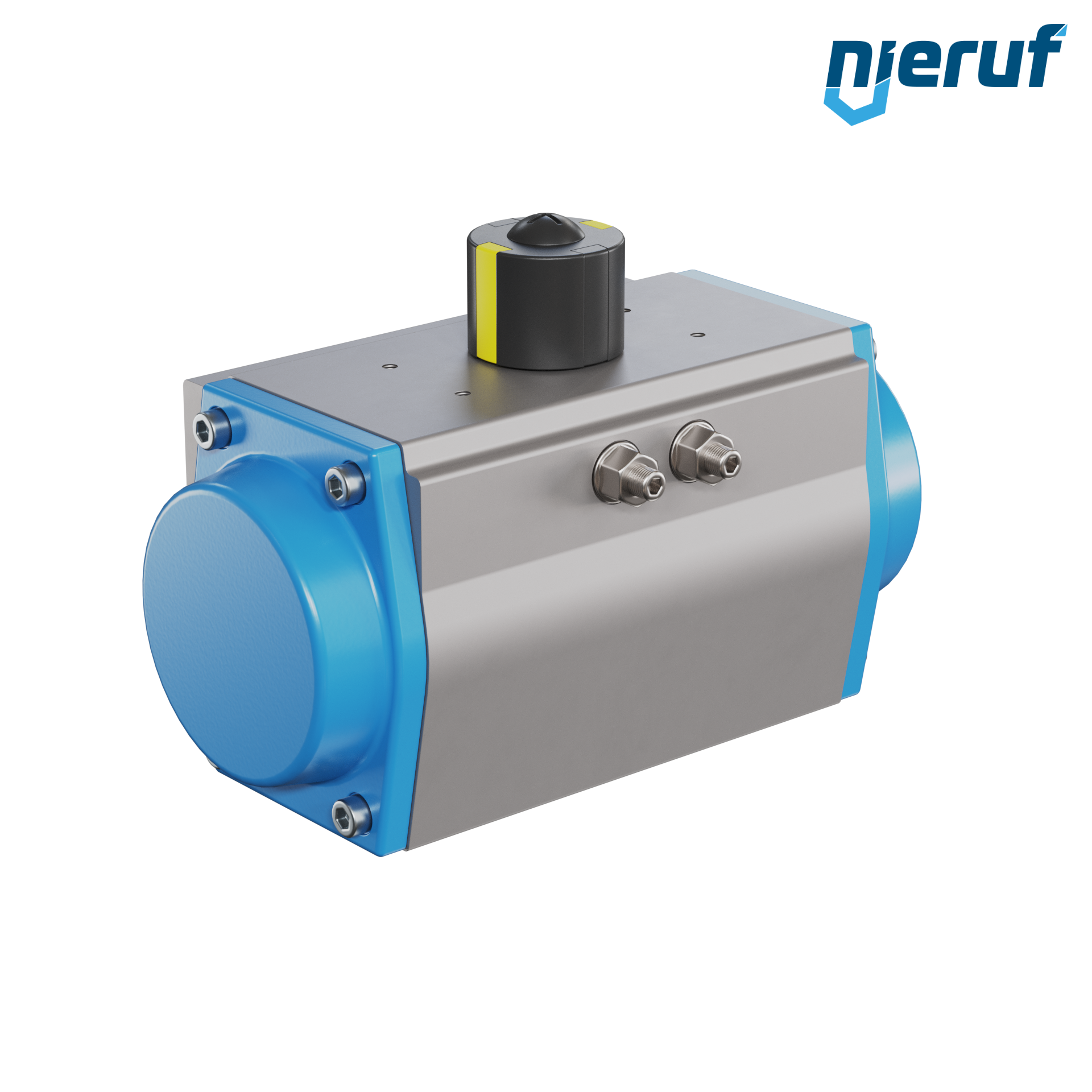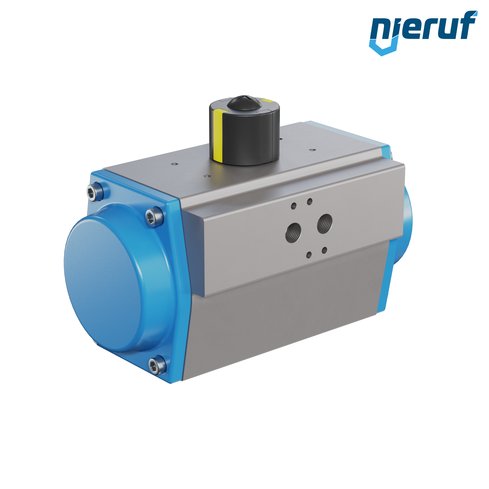 Attuatore pneumatico dal design compatto a semplice effetto versione con apertura a molla per il controllo e la regolazione delle valvole. Angolo di rotazione preimpostato a 90° con indicatore visivo della posizione. Versione per alta temperatura.