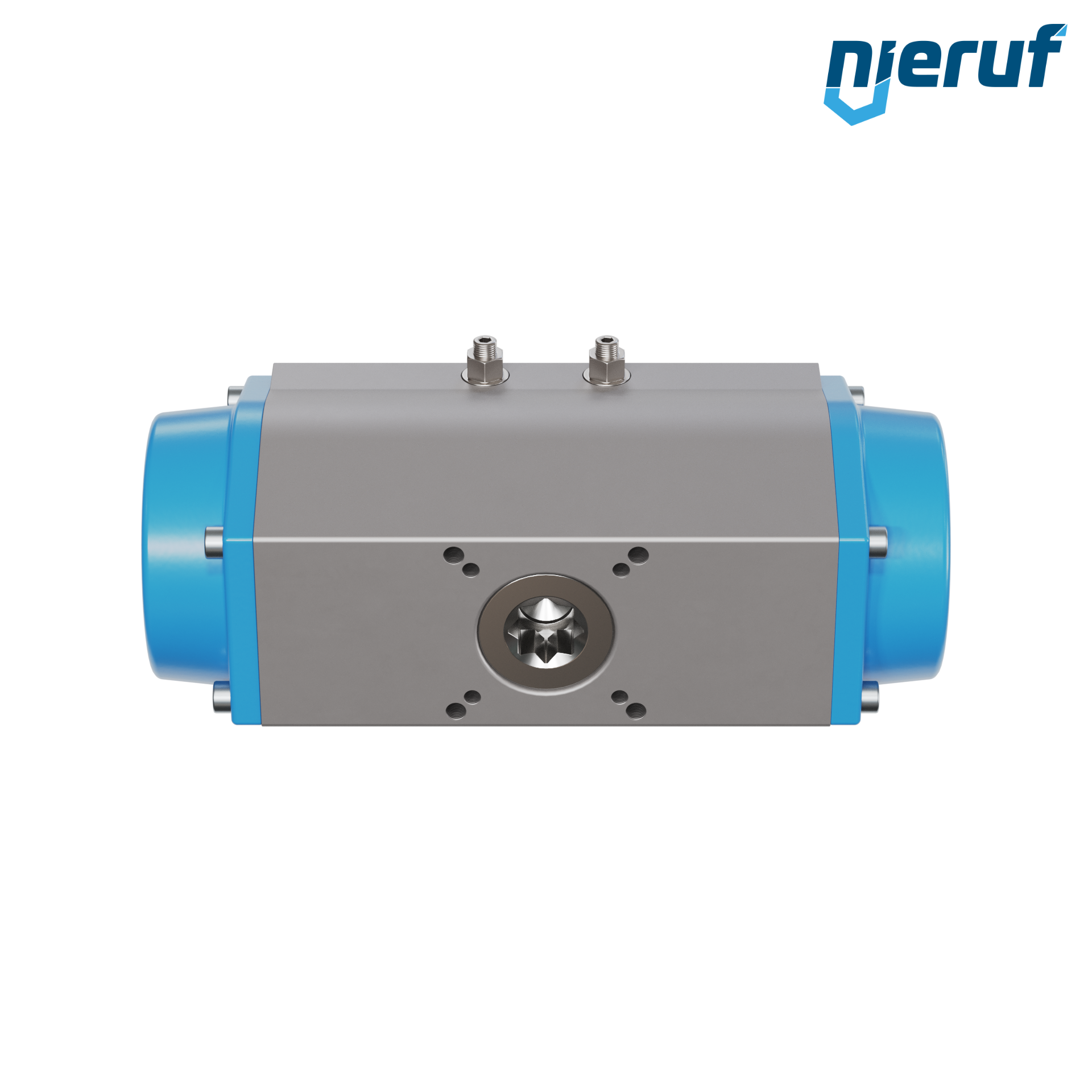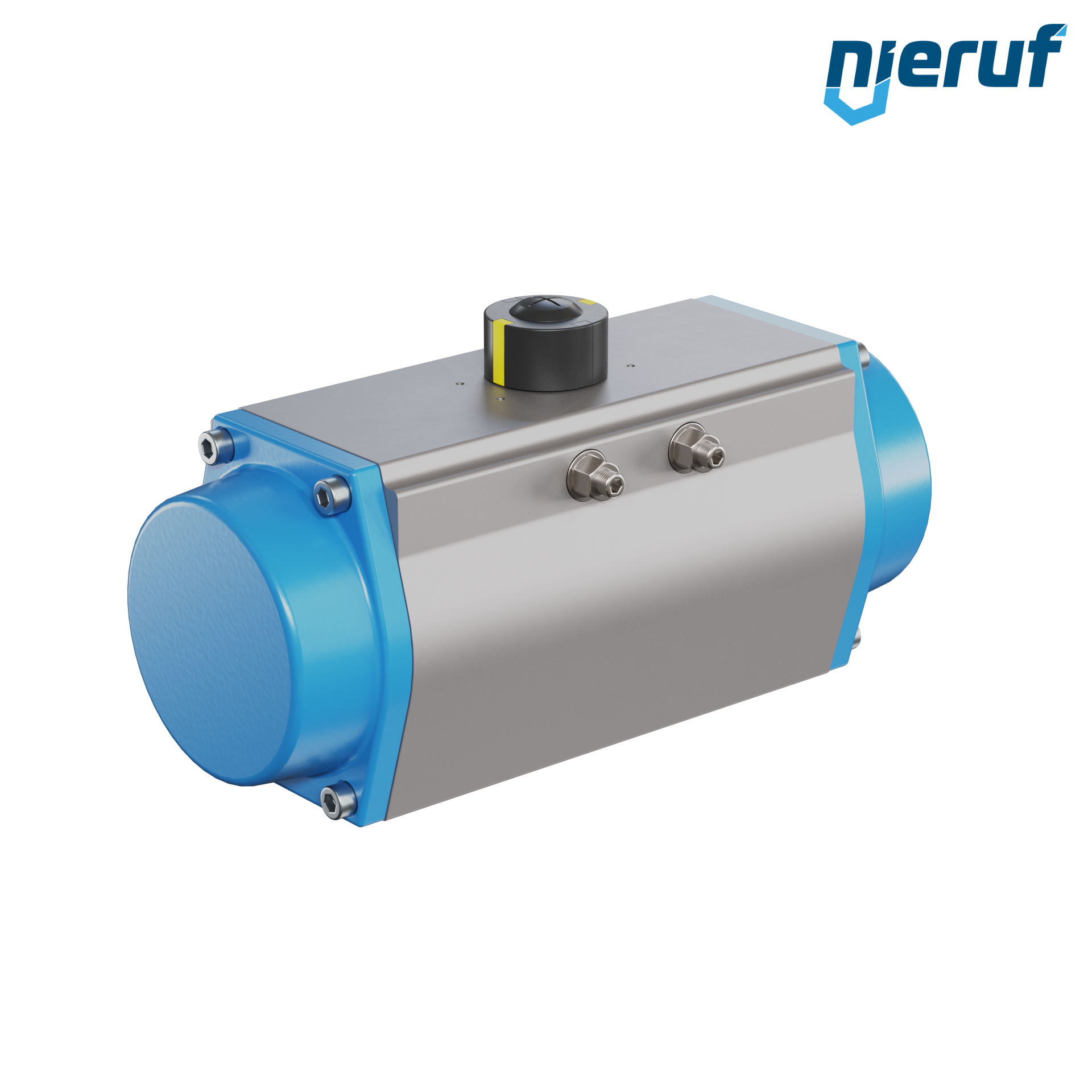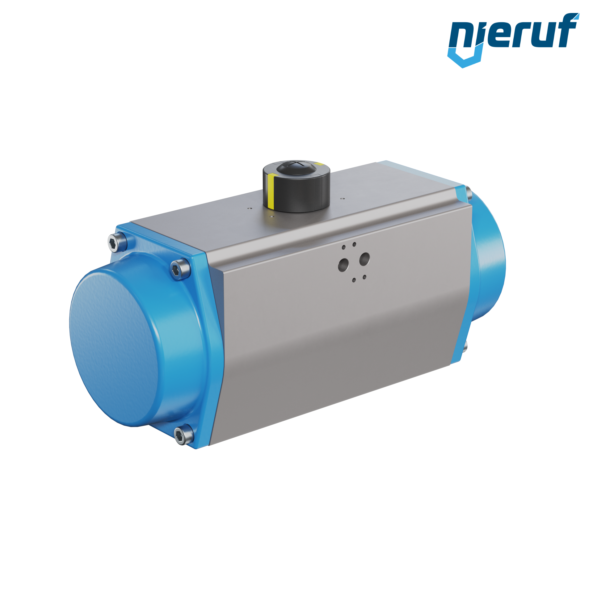 Attuatore pneumatico dal design compatto a semplice effetto versione con apertura a molla per il controllo e la regolazione delle valvole. Angolo di rotazione preimpostato a 90° con indicatore visivo della posizione. Versione per alta temperatura.