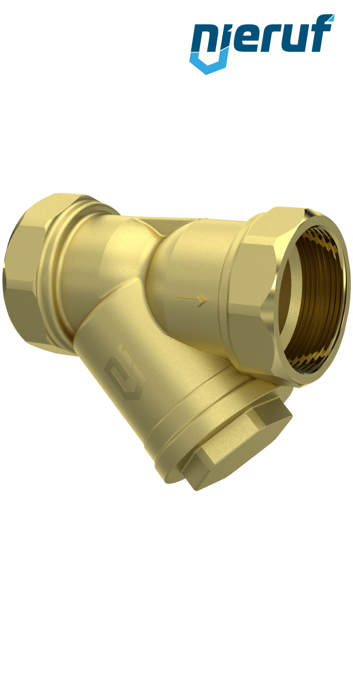 filtro raccoglitore di impurità filettato in ottone, forma di costruzione a " Y " con tappo di tenuta e filtro in acciaio inossidabile removibile, montaggio orizzontale o verticale