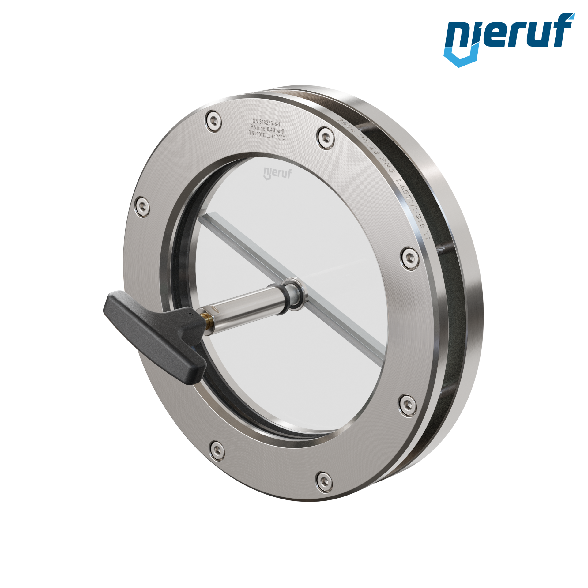 oblò di osservazione per serbatoi con tergicristallo in PTFE DN125 BS04 acciaio inossidabile 1.4571 grafite vetro borosilicato 0,0 bar