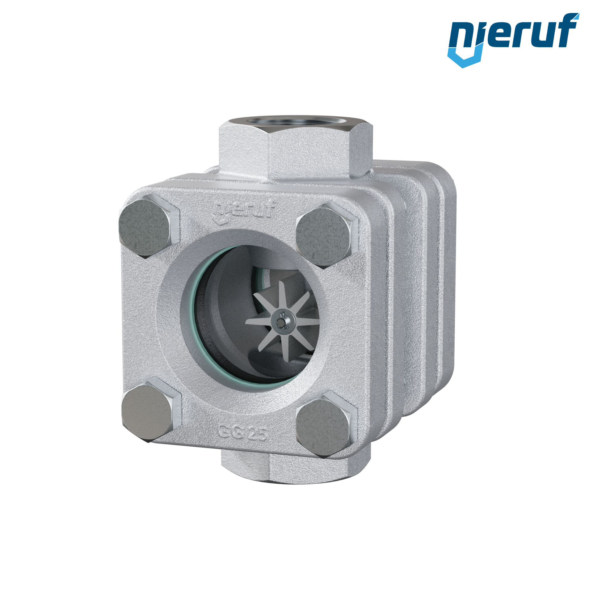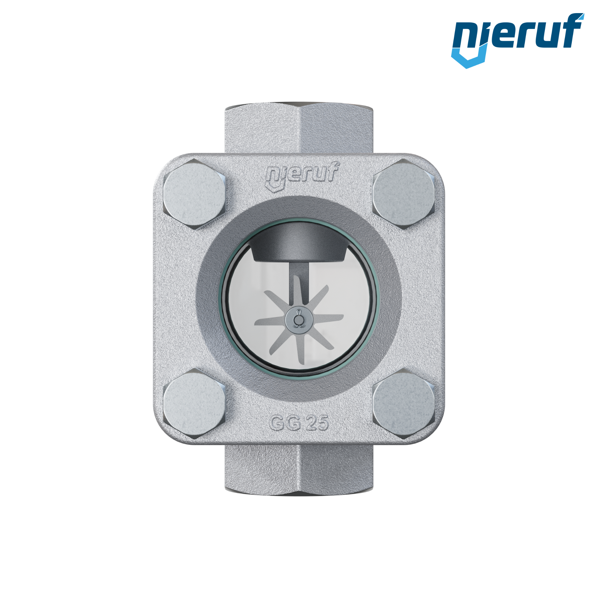 oblò di osservazione filettato / specola visiva a ghiera G 1" pollici ghisa grigia GG25 vetro calciosodico versione con rotore in PTFE