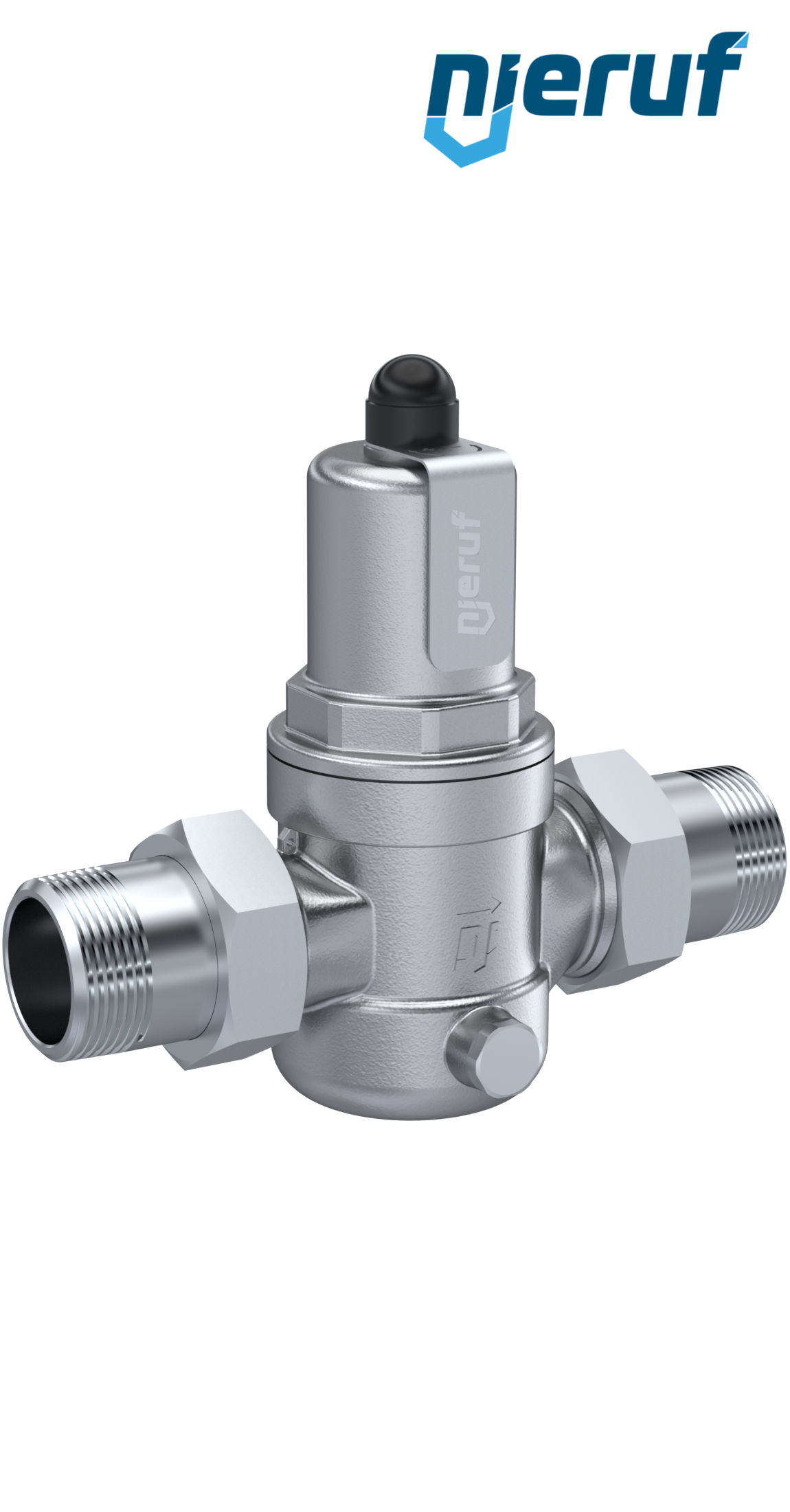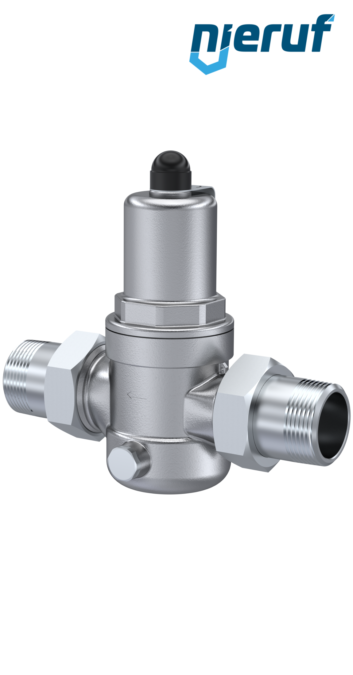 riduttore di pressione 1" pollici filettatura maschio filettatura maschio BSP-T in acciaio inossidabile guarnizione FKM per sostanze liquide e gassose (vapore escluso), impostazione della pressione 0.5 - 2.0 bar