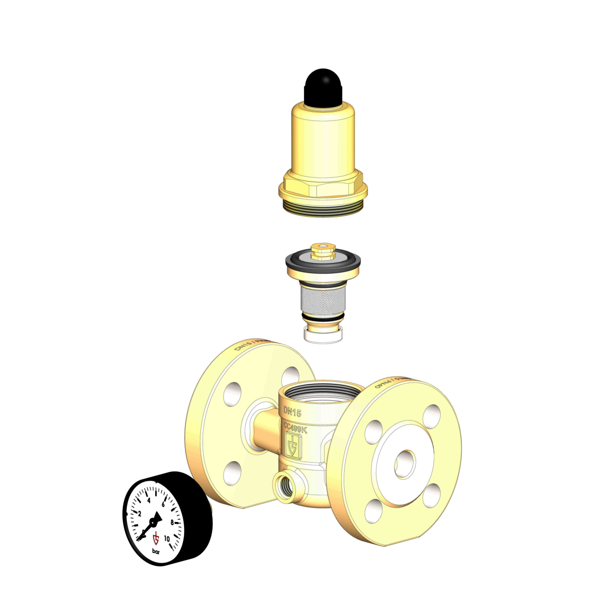 Caratteristica del prodotto | Elastometro di alta qualità resistente al calore con inserto in tessuto nella membrana. Regolazione della pressione tramite mandrino non ascendente. |