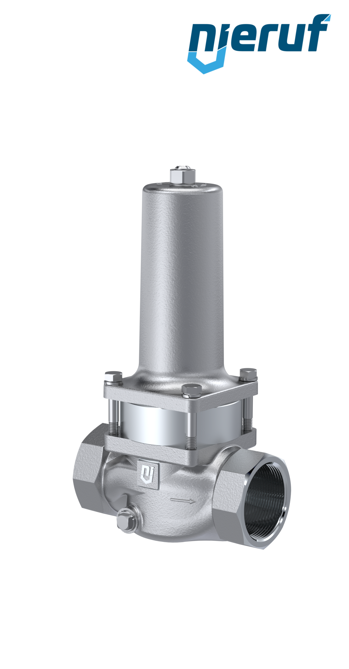 riduttore di pressione a pistone 1 1/4" pollici NPT filettatura interna / femmina NPT in acciaio inossidabile guarnizione FPM / FKM per sostanze liquide e gassose neutre, impostazione della pressione 2.0 - 20.0 bar