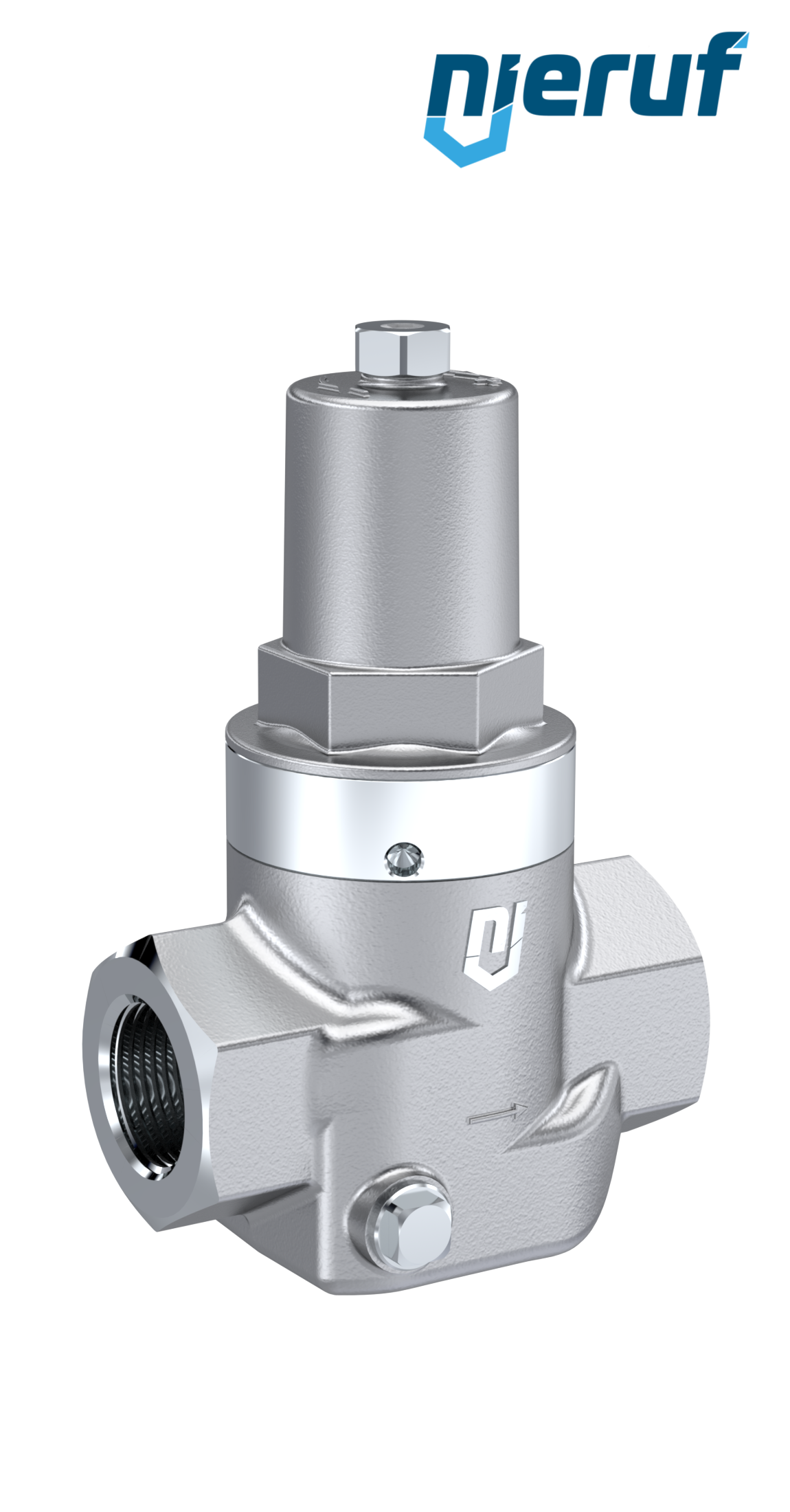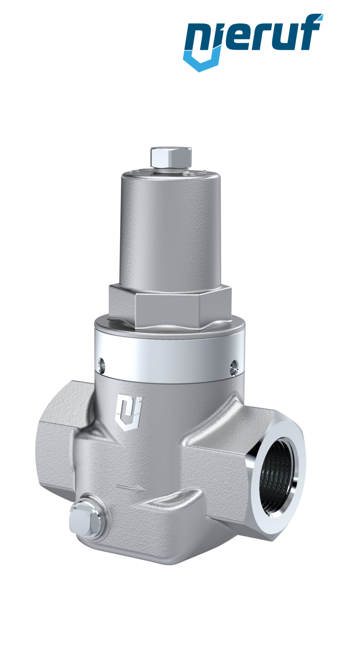 riduttore di pressione a pistone 1" pollici NPT filettatura interna / femmina NPT in acciaio inossidabile guarnizione FPM / FKM per sostanze liquide e gassose neutre, impostazione della pressione 2.0 - 20.0 bar