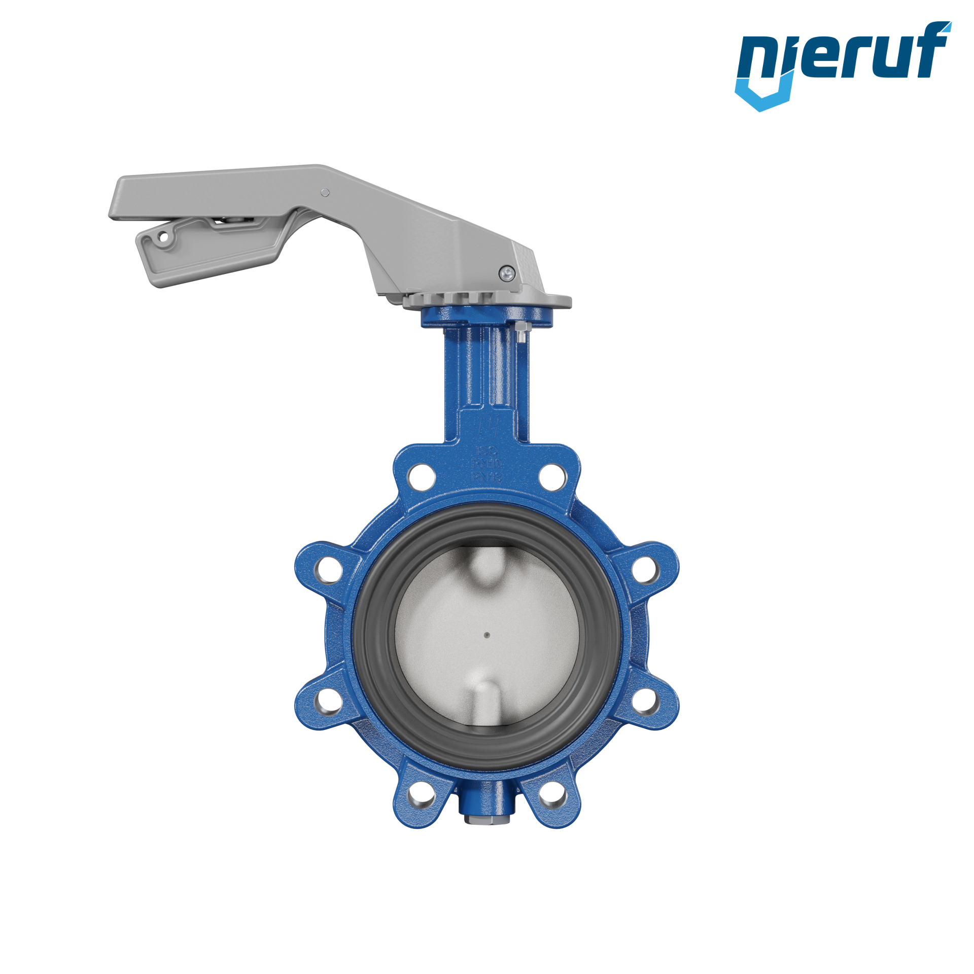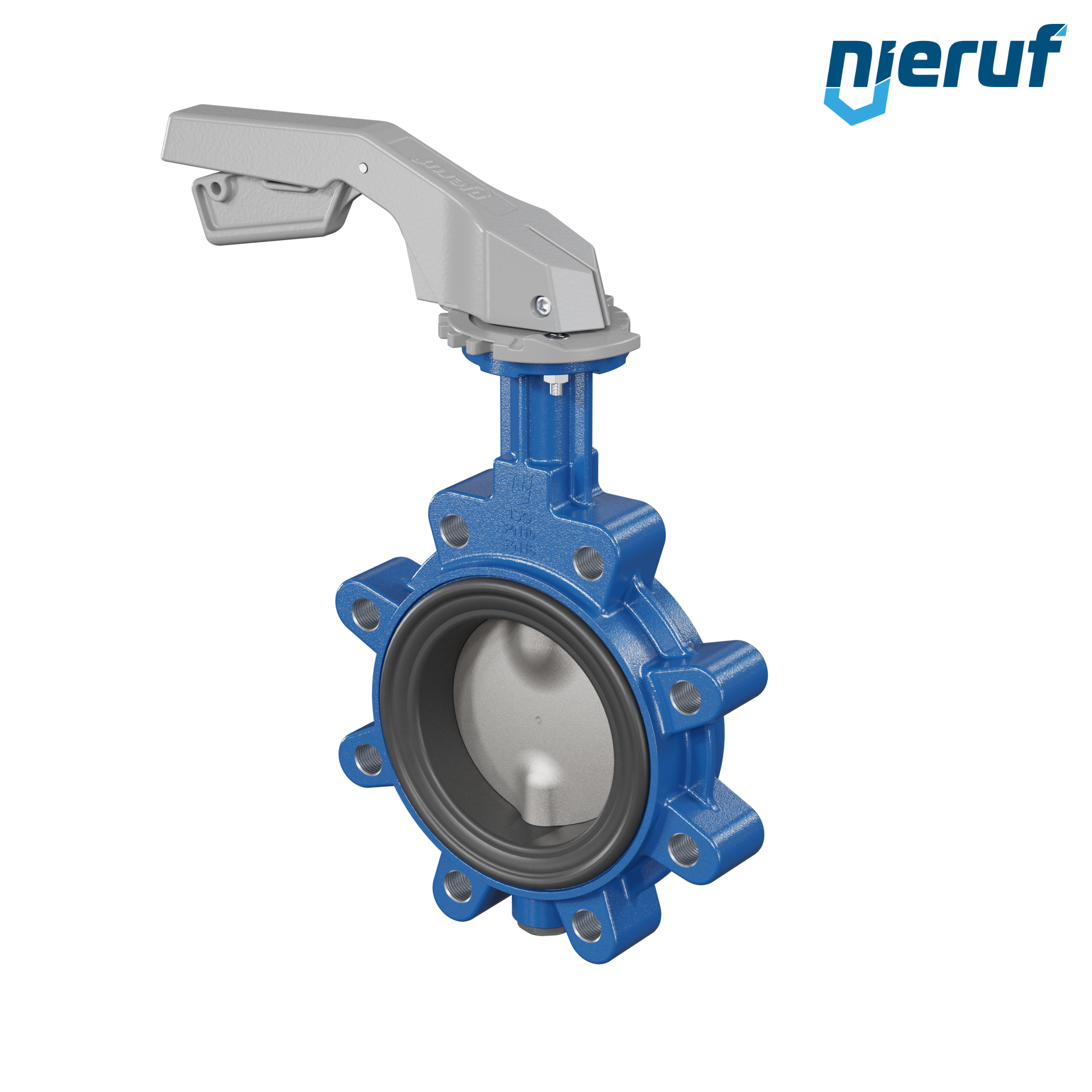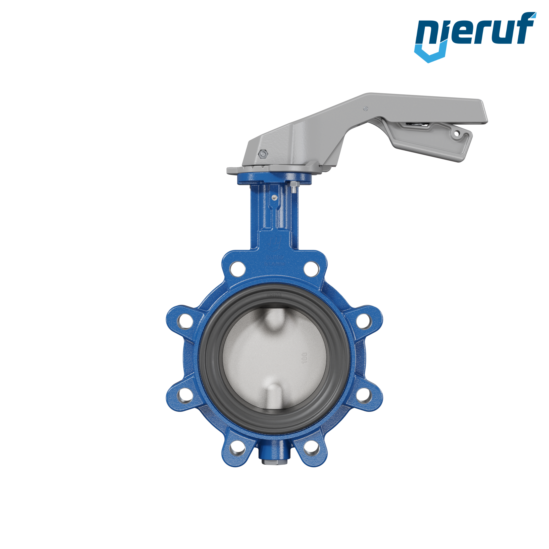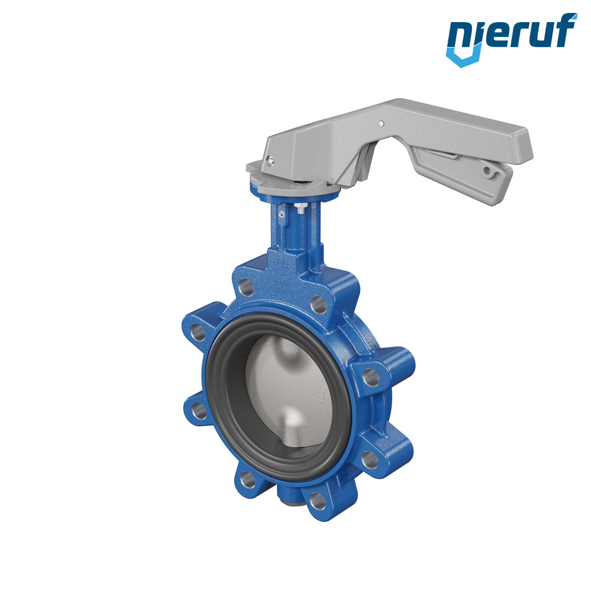 valvola a farfalla DN 100 PN10-PN16 con orecchie filettate / lug corpo in ghisa sferoidale con leva a mano grigia manicotto in FPM per sostanze liquide e gassose