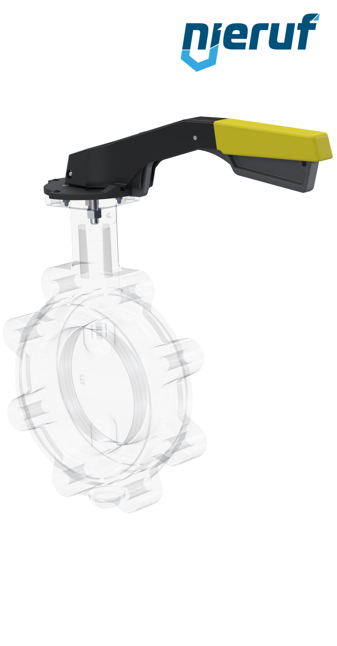 valvola a farfalla DN 100 PN10-PN16 con orecchie filettate / lug ghisa sferoidale con leva a mano gialla NBR-70-nero DVGW gas