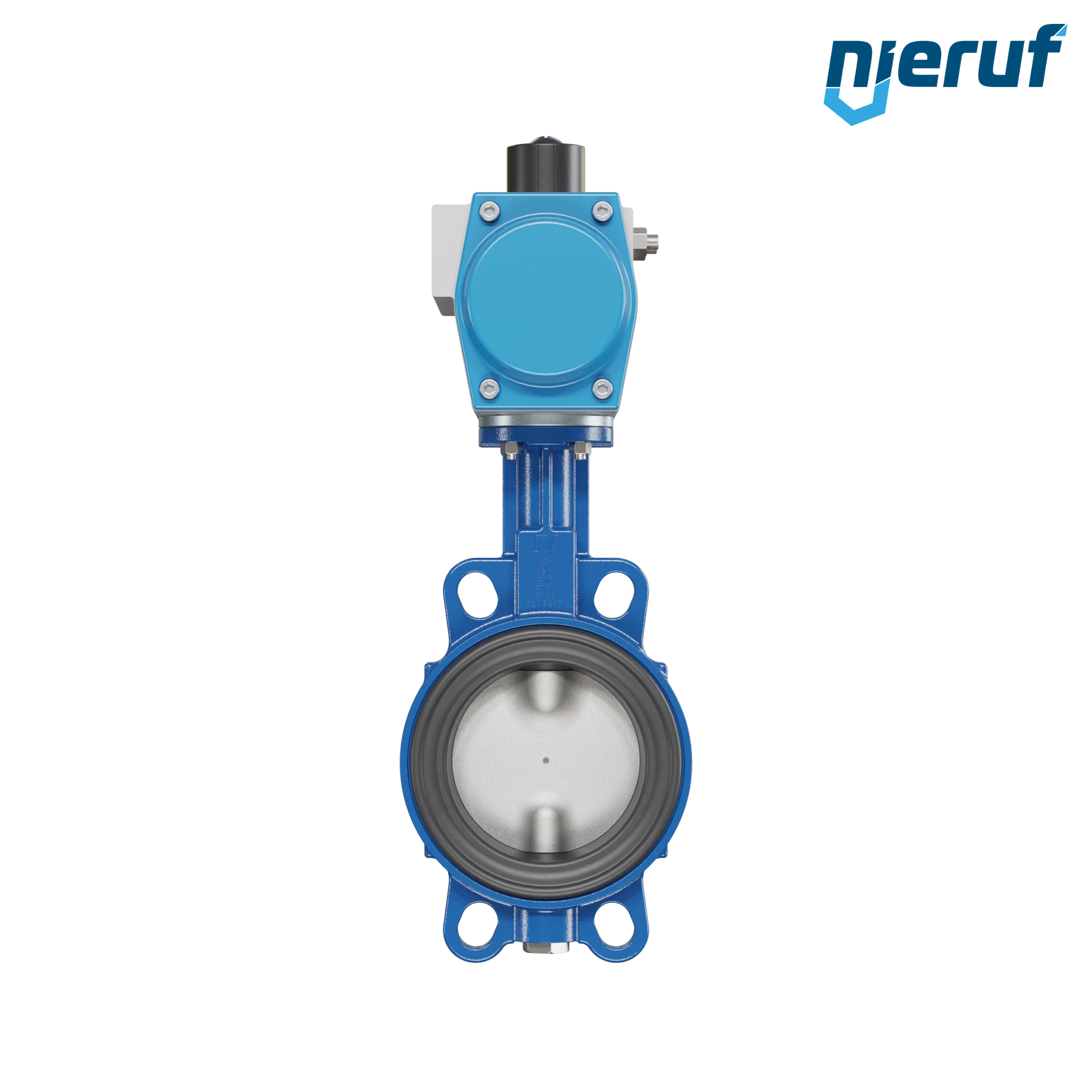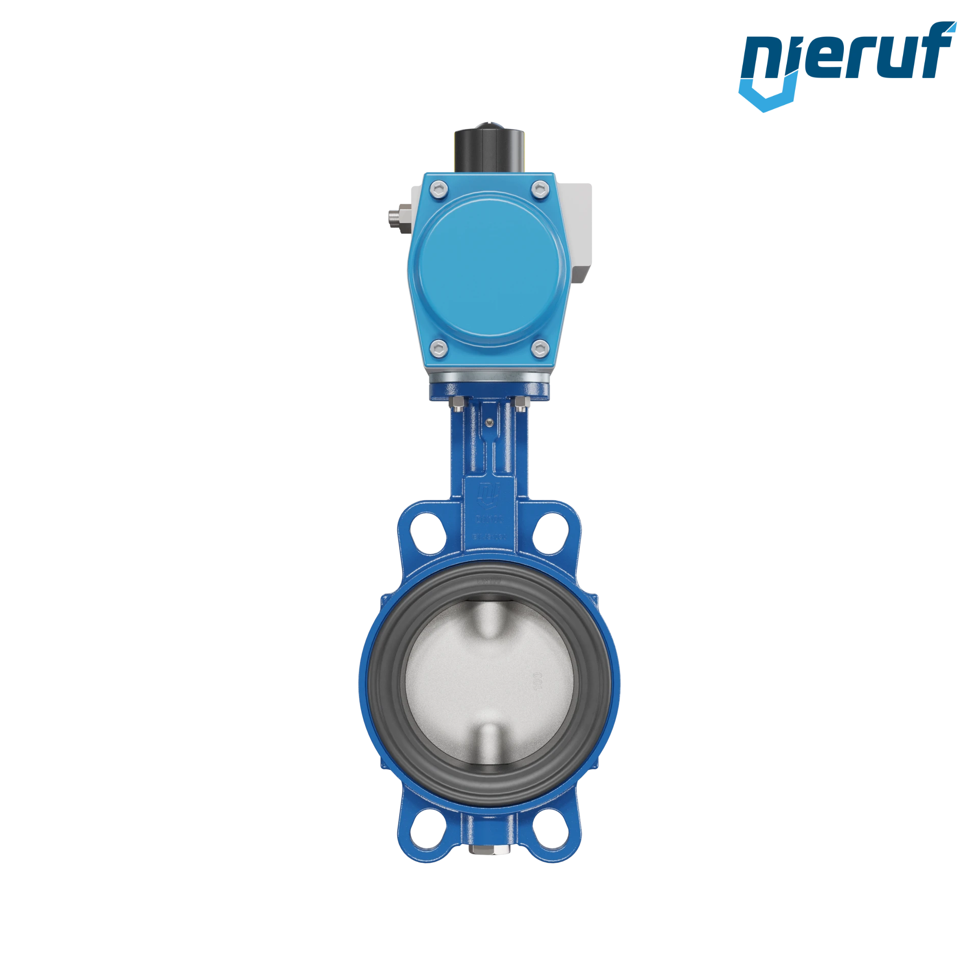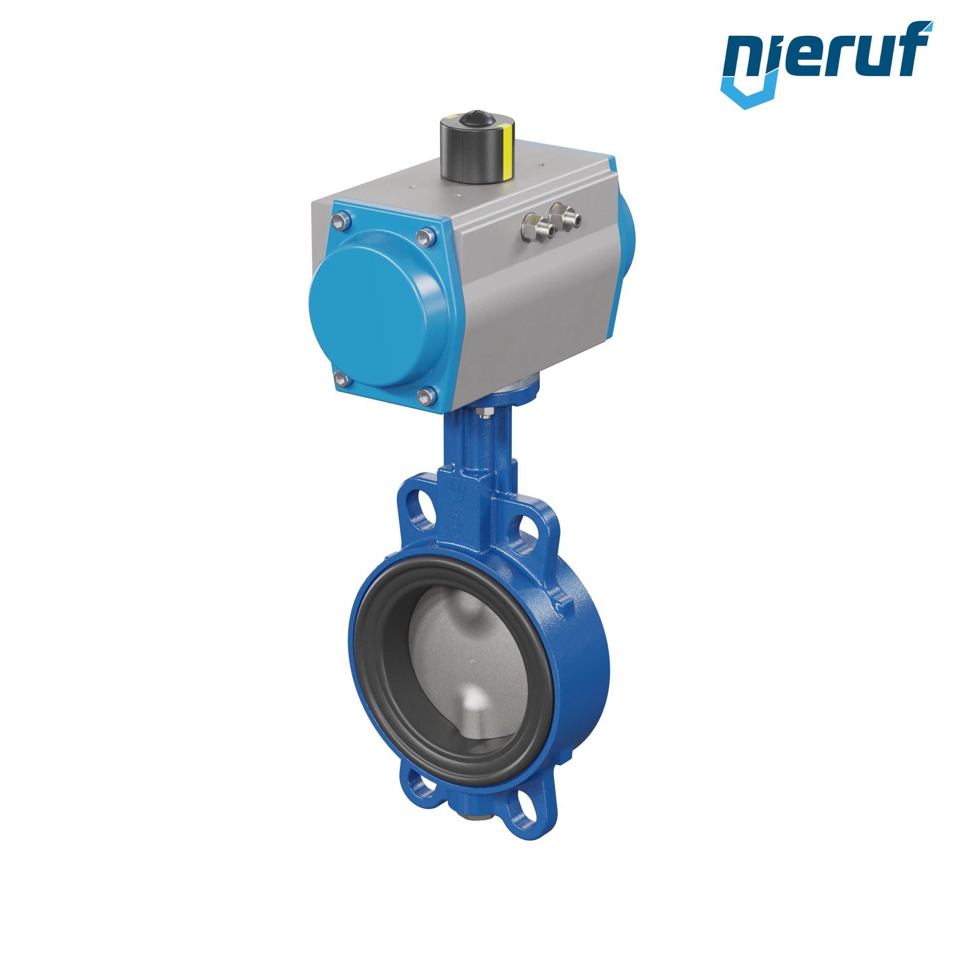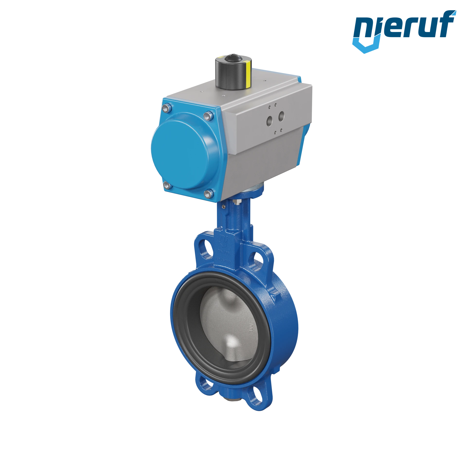 valvola a farfalla DN 100 tipo wafer corpo in ghisa sferoidale con attuatore pneumatico a doppio effetto manicotto in NBR-70-nero DVGW gas