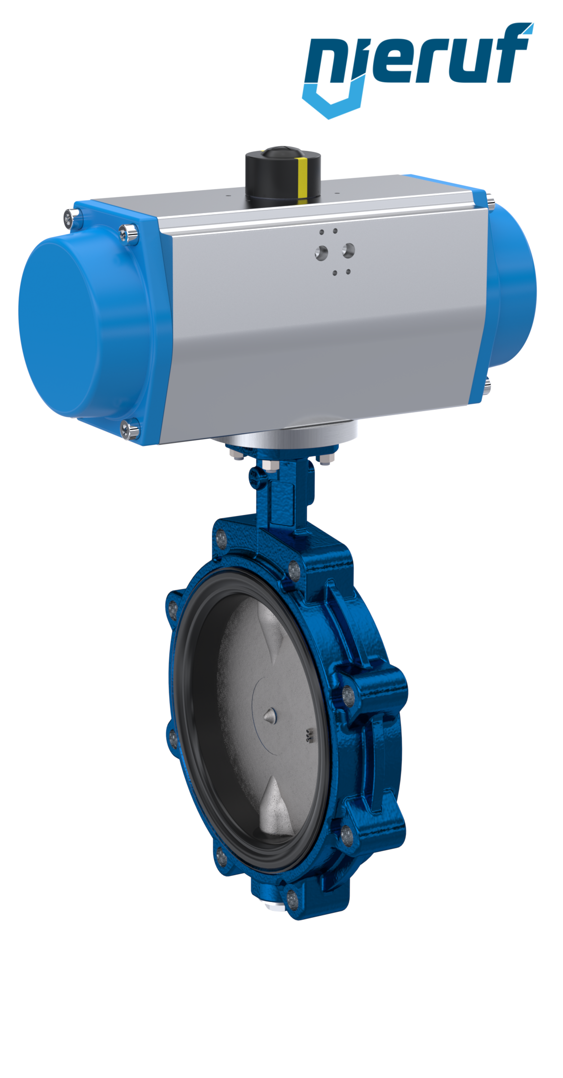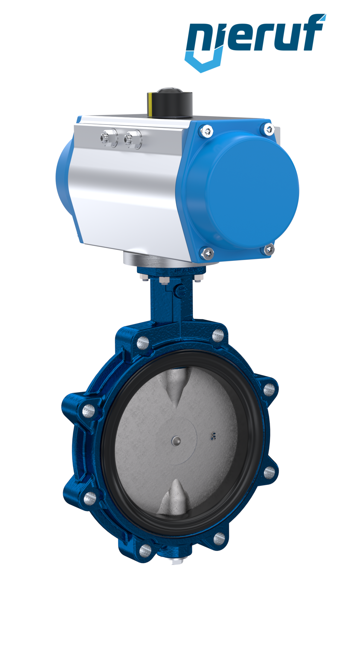 Valvola a farfalla esente da manutenzione con rivestimento epossidico di alta qualità e stelo diviso. Sistema di tenuta a tre stadi per garantire tenuta, durata e sicurezza. L'attuatore può essere ampliato in opzione con una scatola di finecorsa.