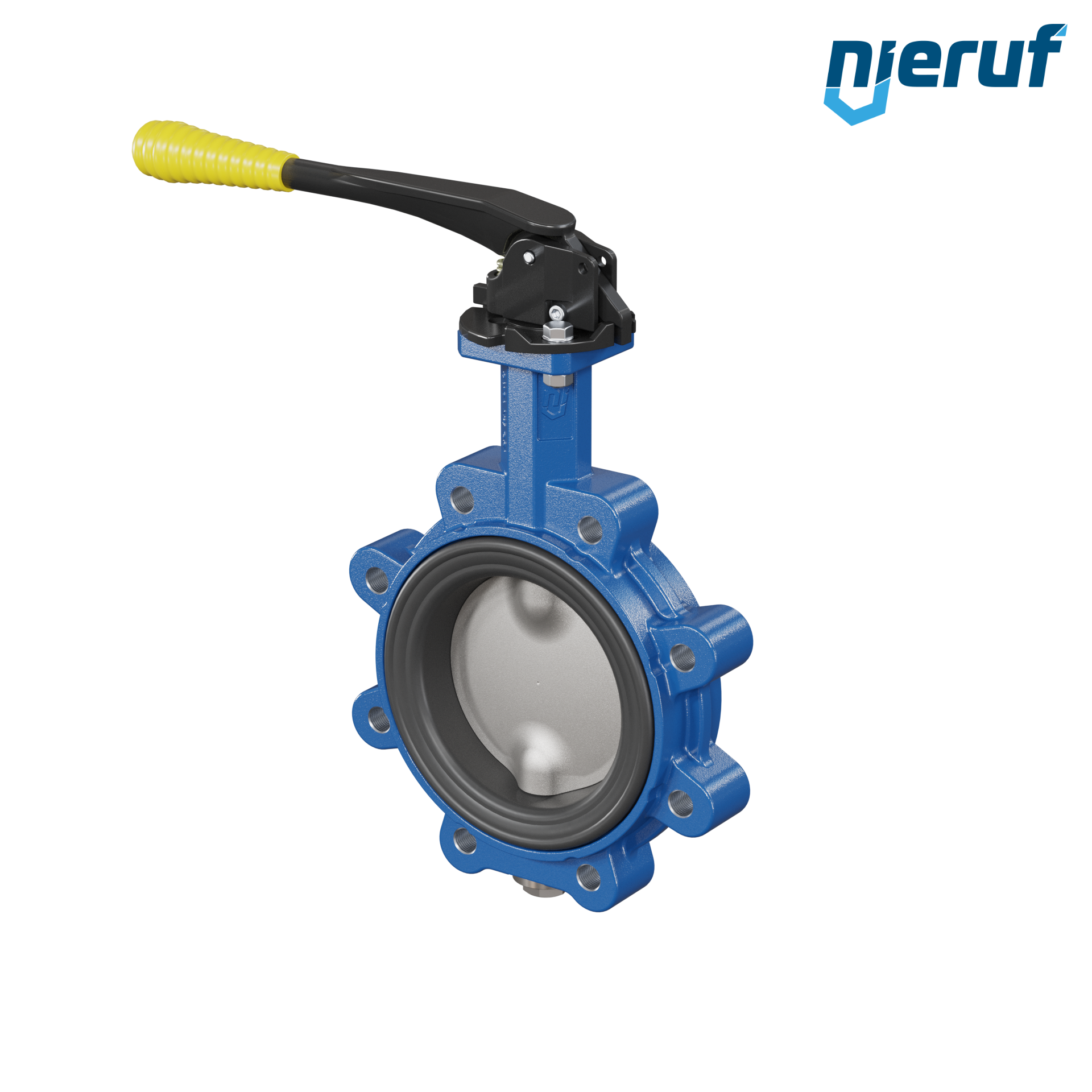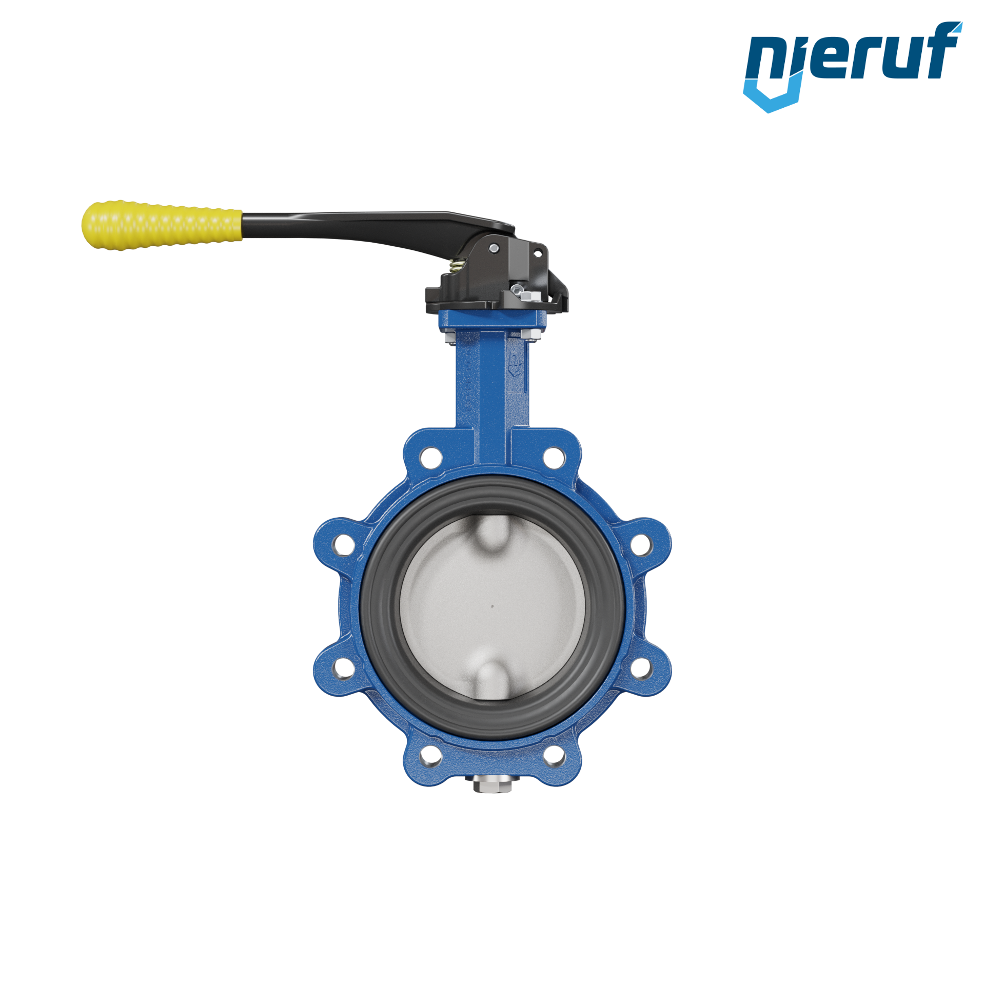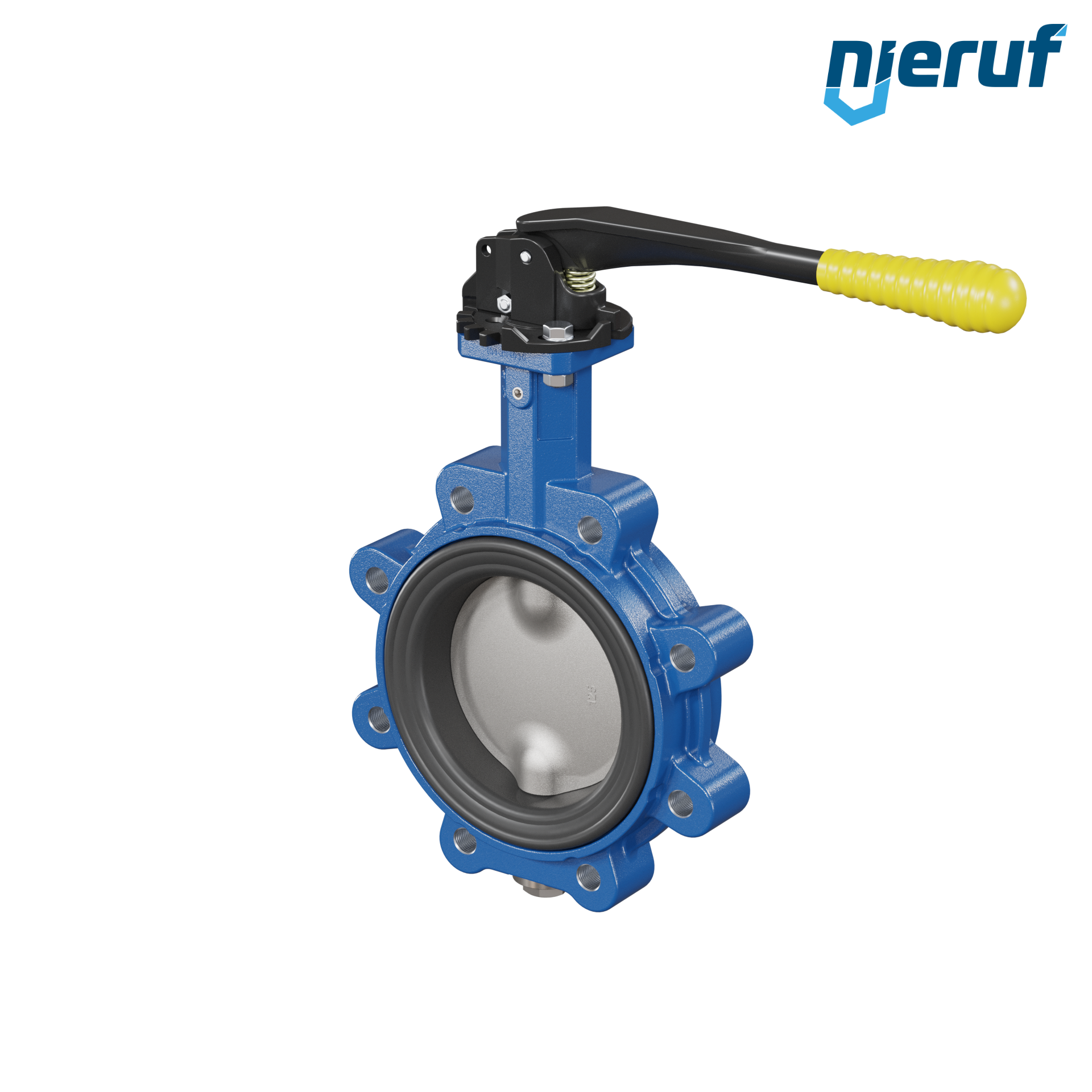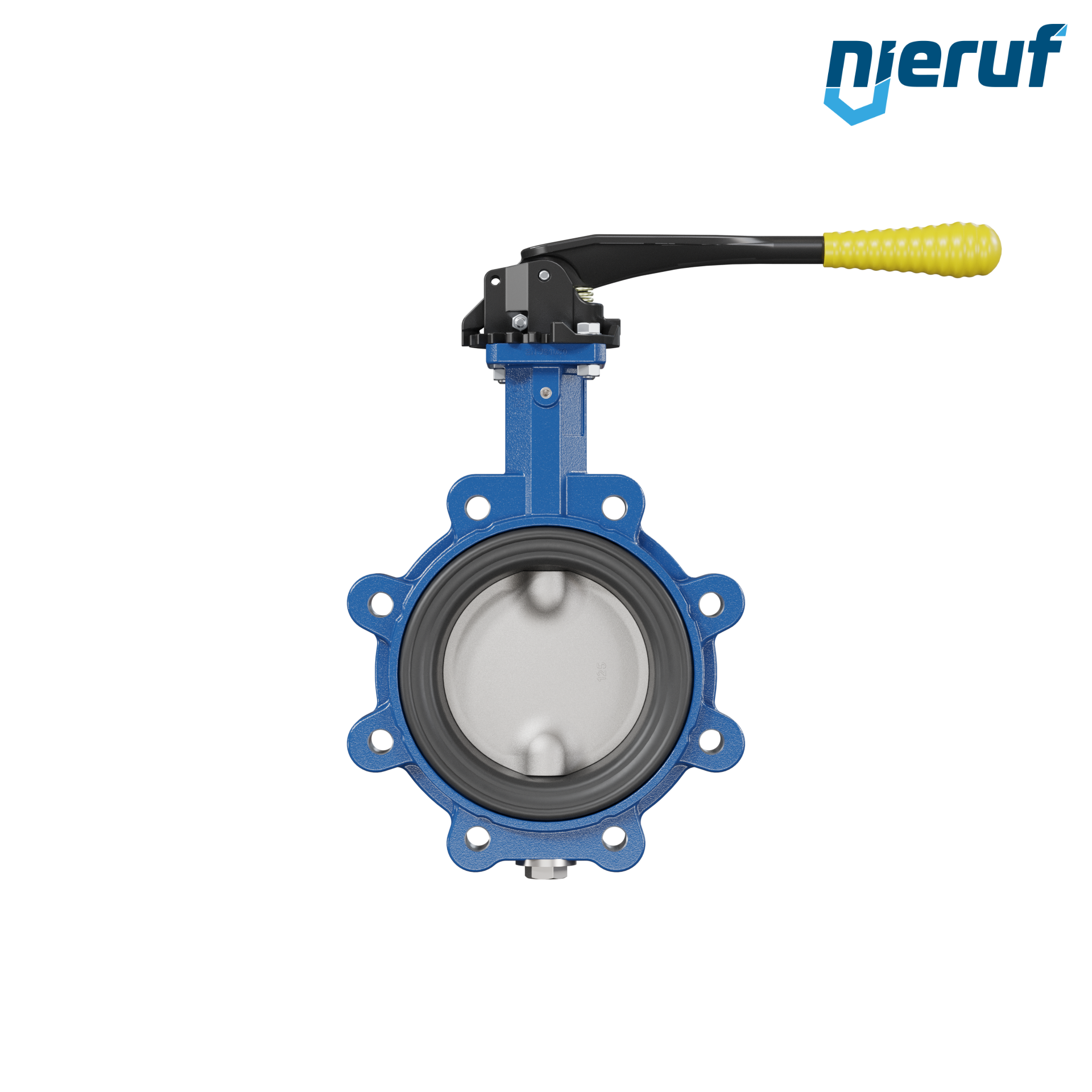 valvola a farfalla DN 125 PN10-PN16 con orecchie filettate / lug ghisa sferoidale con leva a a mano con manicotto giallo NBR-70-nero DVGW gas