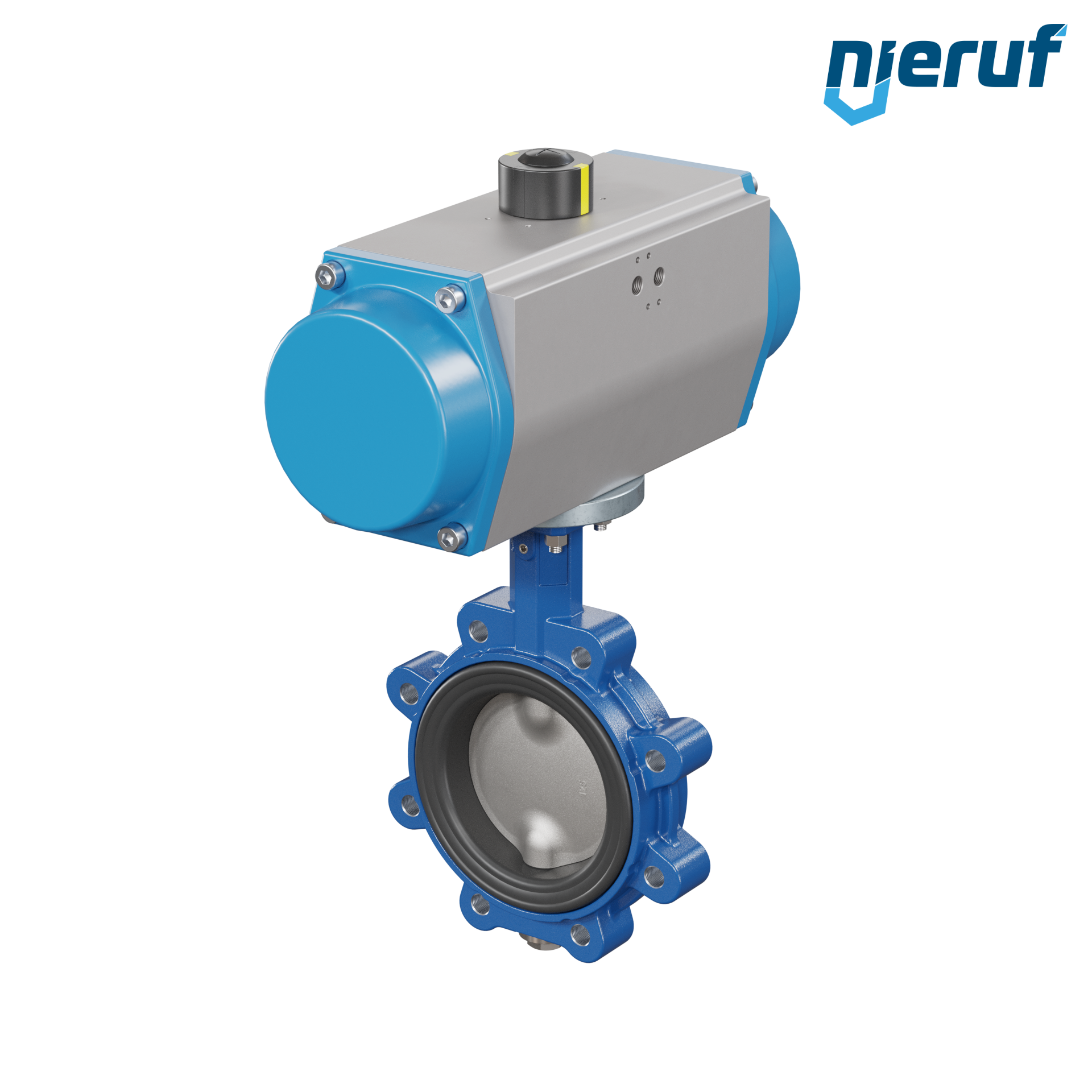 valvola a farfalla DN 125 con orecchie filettate / lug corpo in ghisa sferoidale con attuatore pneumatico a semplice effetto chiusura a molla manicotto in NBR-70-nero DVGW gas