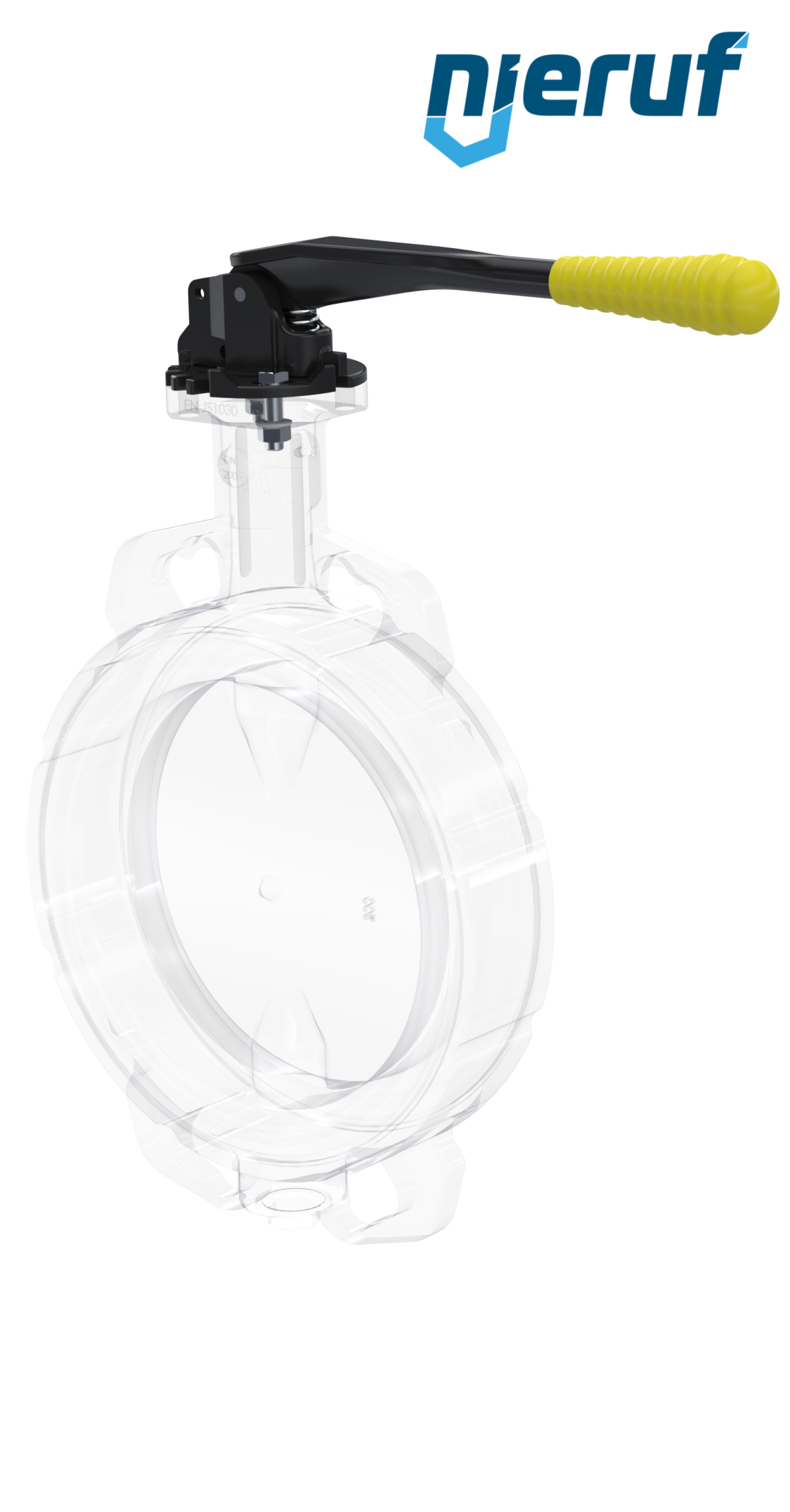 valvola a farfalla DN 200 PN6-PN10-PN16 & ANSI150 tipo wafer ghisa sferoidale con leva a a mano con manicotto giallo NBR-70-nero DVGW gas