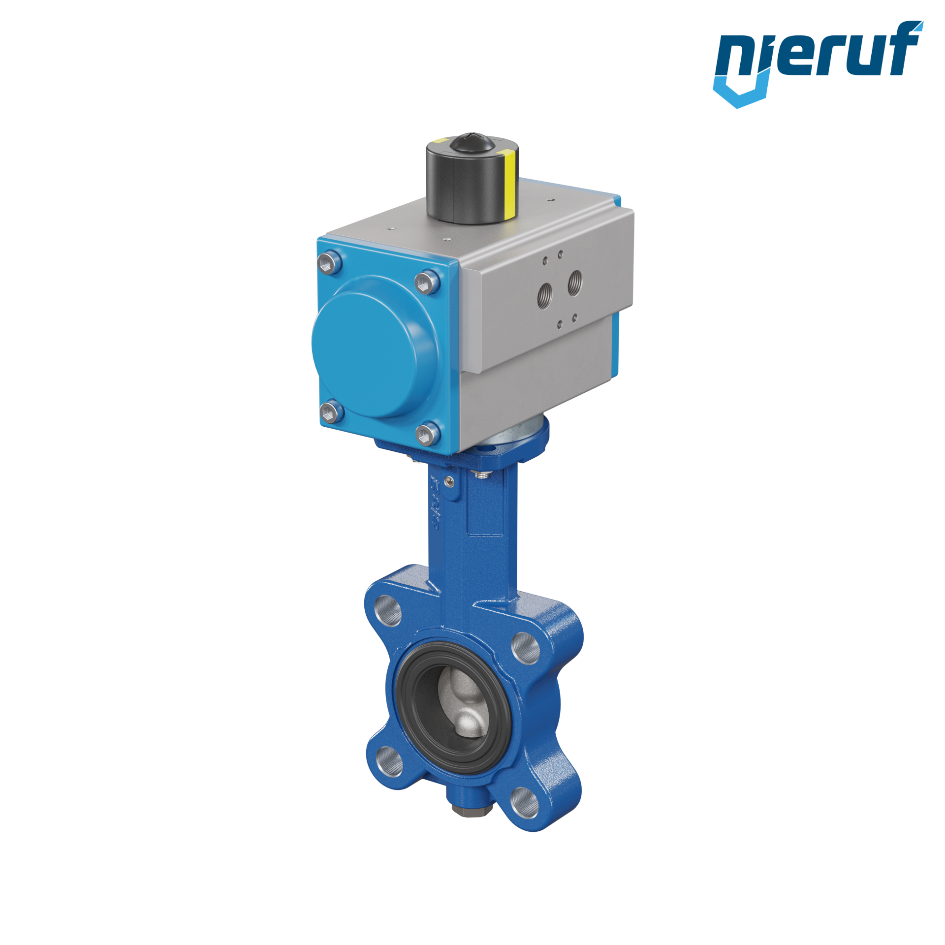 valvola a farfalla DN 32 con orecchie filettate / lug corpo in ghisa sferoidale con attuatore pneumatico a semplice effetto chiusura a molla manicotto in NBR-70-nero DVGW gas