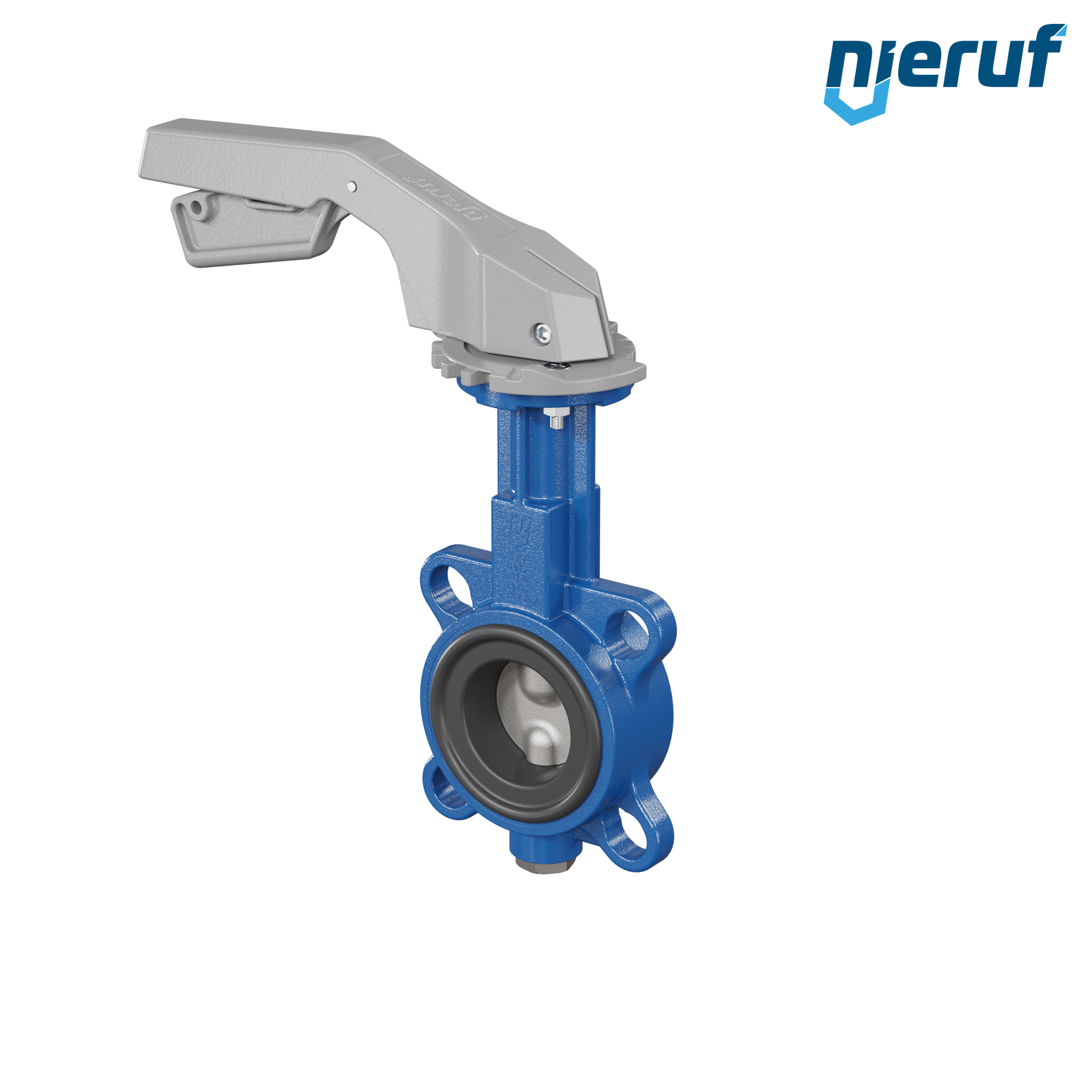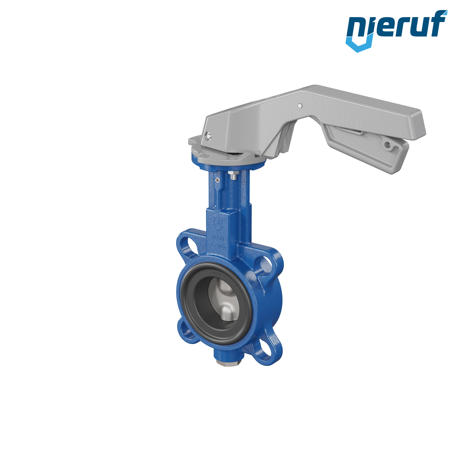 valvola a farfalla DN 50 PN6-PN10-PN16 & ANSI150 tipo wafer corpo in ghisa sferoidale con leva a mano grigia manicotto in FPM