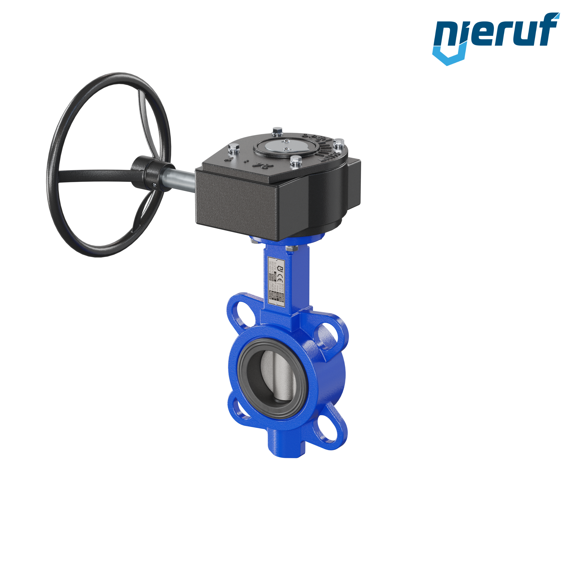 Valvola a farfalla con rivestimento epossidico del corpo di alta qualità, disco in acciaio inossidabile, guarnizione in EPDM vulcanizzata, collo lungo per isolamento, montaggio diretto conforme ISO 5211 per attuatore, certificato CE PED 97/23.