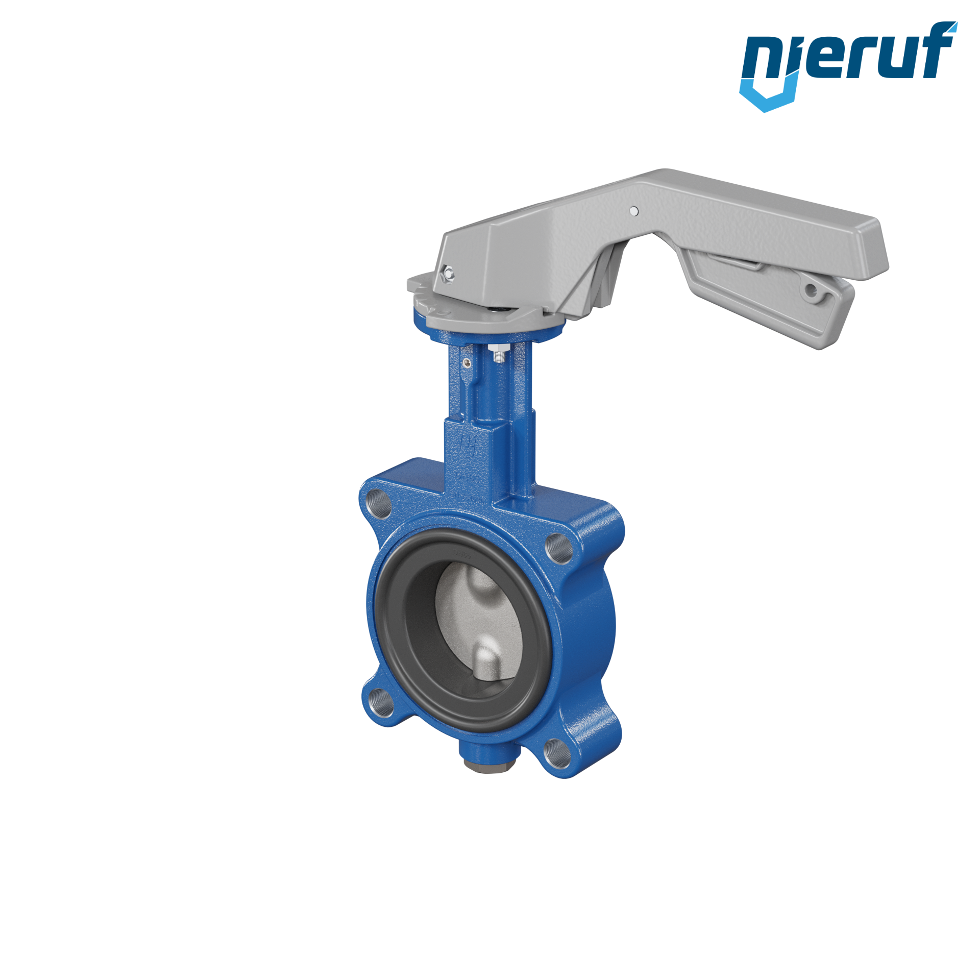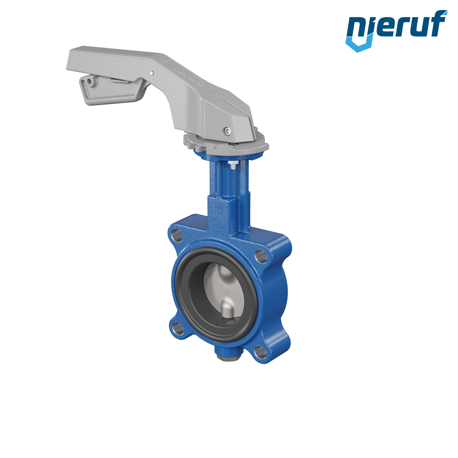 valvola a farfalla DN 65 PN10-PN16 con orecchie filettate / lug corpo in ghisa sferoidale con leva a mano grigia manicotto in FPM per sostanze liquide e gassose