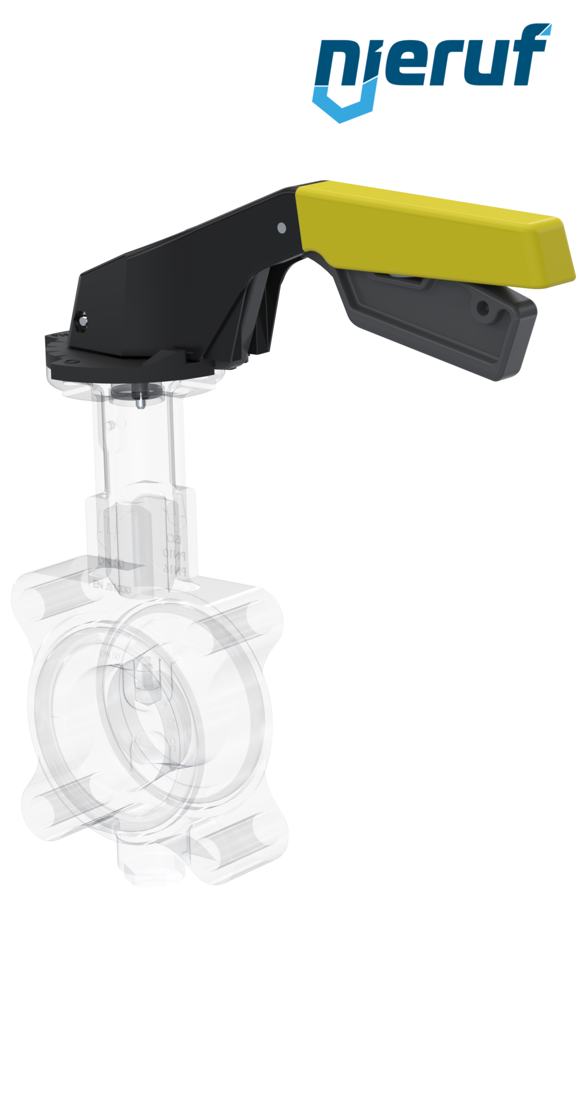 valvola a farfalla DN 65 PN10-PN16 con orecchie filettate / lug ghisa sferoidale con leva a mano gialla NBR-70-nero DVGW gas