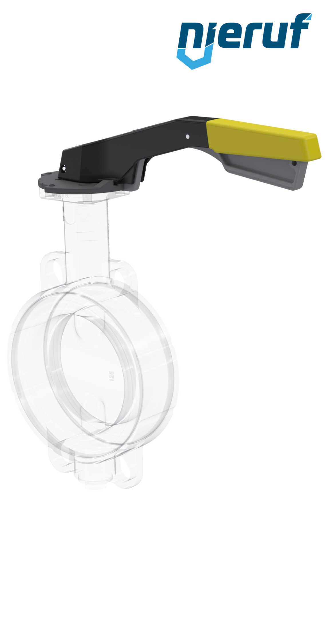 valvola a farfalla DN 80 PN6-PN10-PN16 & ANSI150 tipo wafer ghisa sferoidale con leva a mano gialla NBR-70-nero DVGW gas
