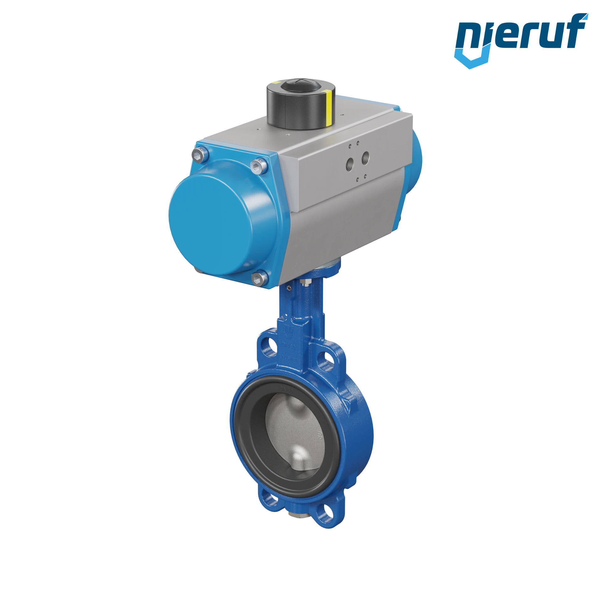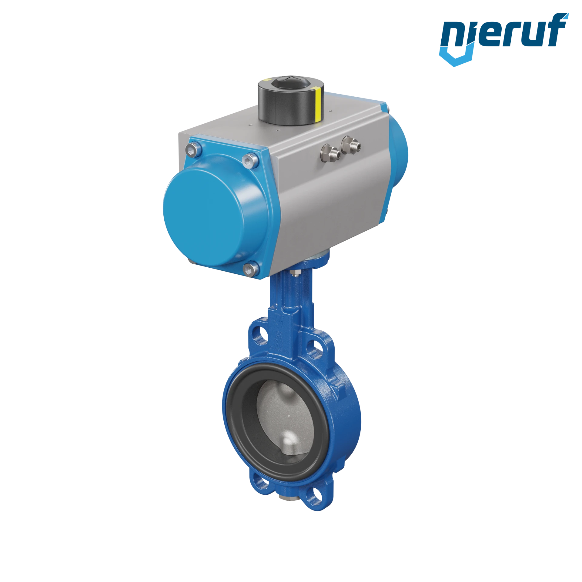 valvola a farfalla DN 80 tipo wafer corpo in ghisa sferoidale con attuatore pneumatico a semplice effetto chiusura a molla manicotto in FPM