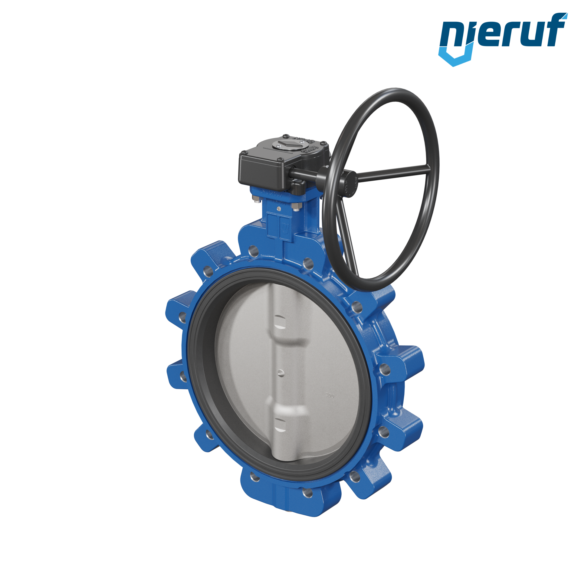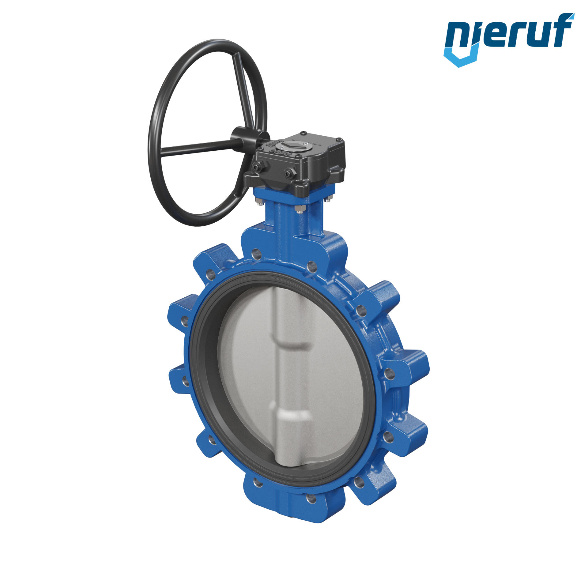 valvola a farfalla DN 300 PN10 con orecchie filettate / lug corpo in ghisa sferoidale con volantino manicotto in FPM per sostanze liquide e gassose