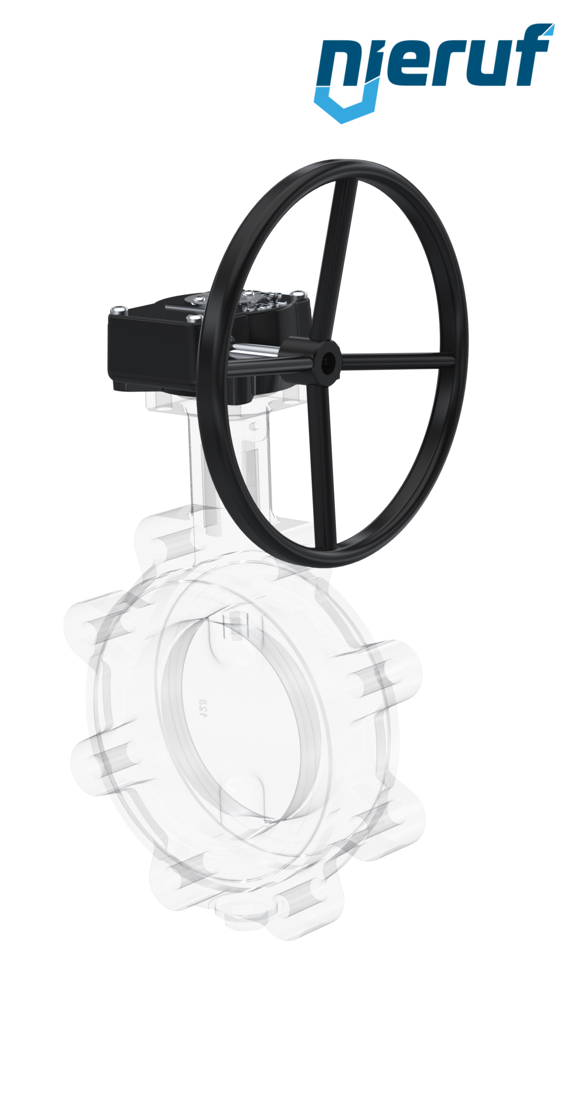 valvola a farfalla DN 80 PN10-PN16 con orecchie filettate / lug corpo in ghisa sferoidale con volantino manicotto in FPM per sostanze liquide e gassose