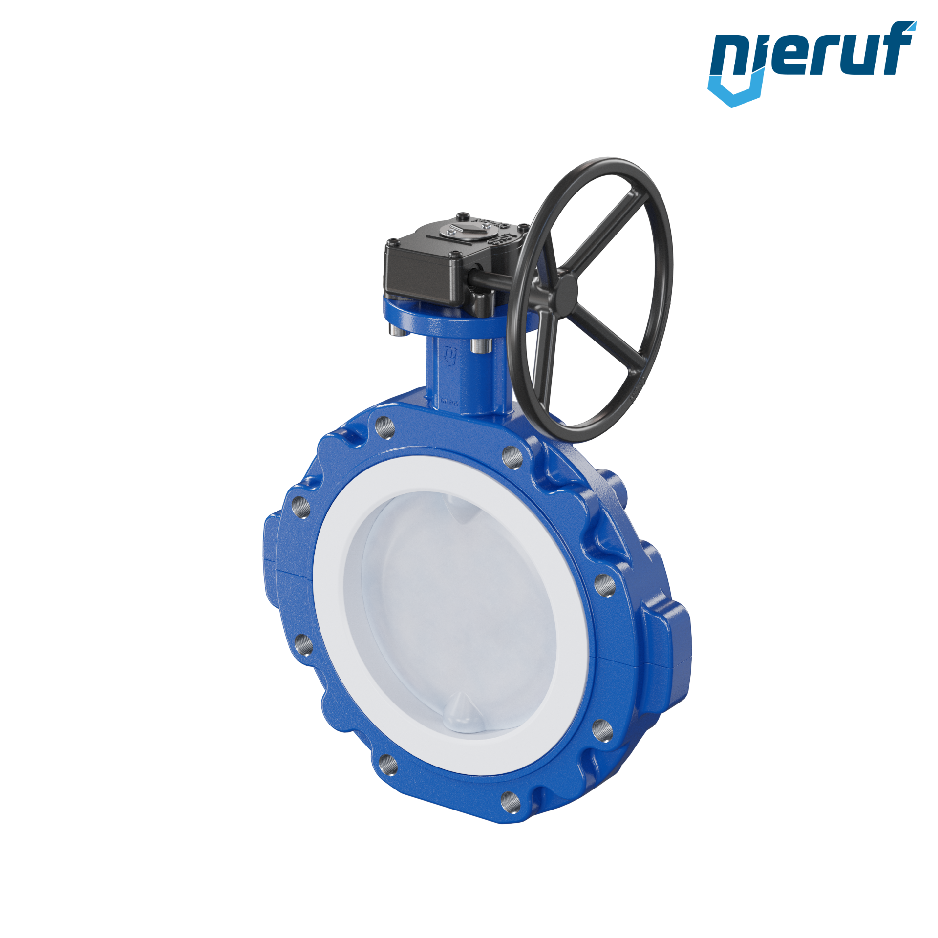 valvola a farfalla PFA PTFE AK10 DN200 ANSI150 volantino manuale inserto in FKM